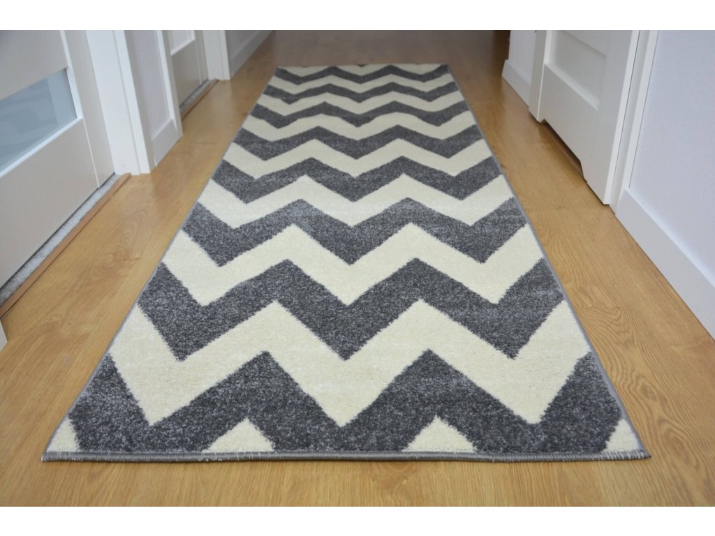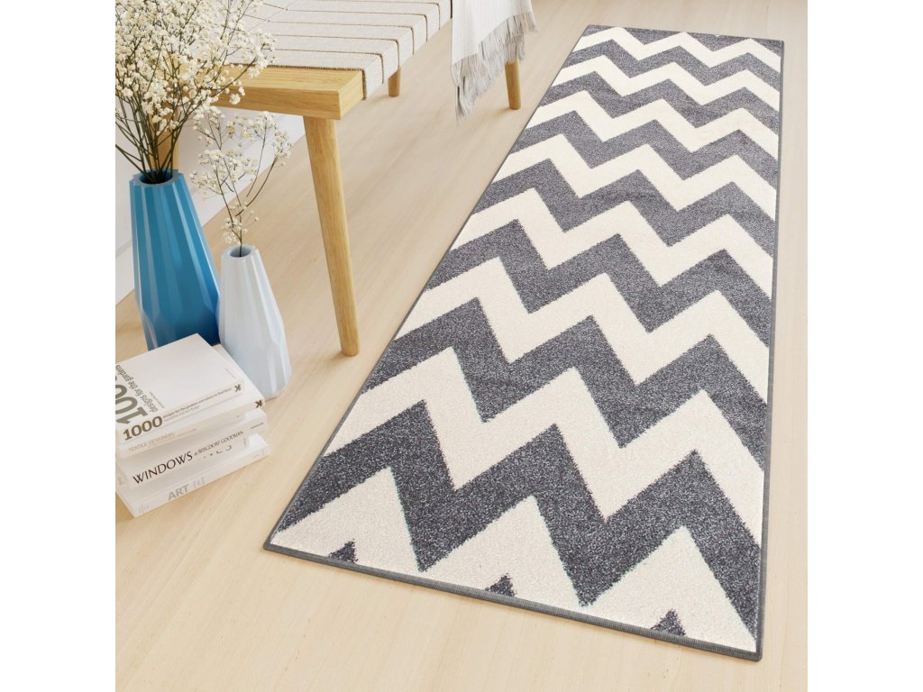 Bielo-sivý koberec Roman sa vyznačuje hustými štetinami 2 200 g/m2 typu Frieze s výškou vlasu 10 mm. Polypropylénové vlákna majú vynikajúcu mäkkosť a pružnosť. Koberec sa nedoformuje, je odolný voči oderu a ľahko sa čistí. Vyznačuje sa svojim moderným geometrickým dizajnom. Tento behúň je možné použiť v kuchyni alebo na chodbe. Skvele doplní moderný i klasický interiér.