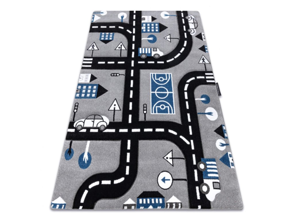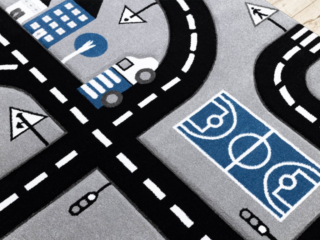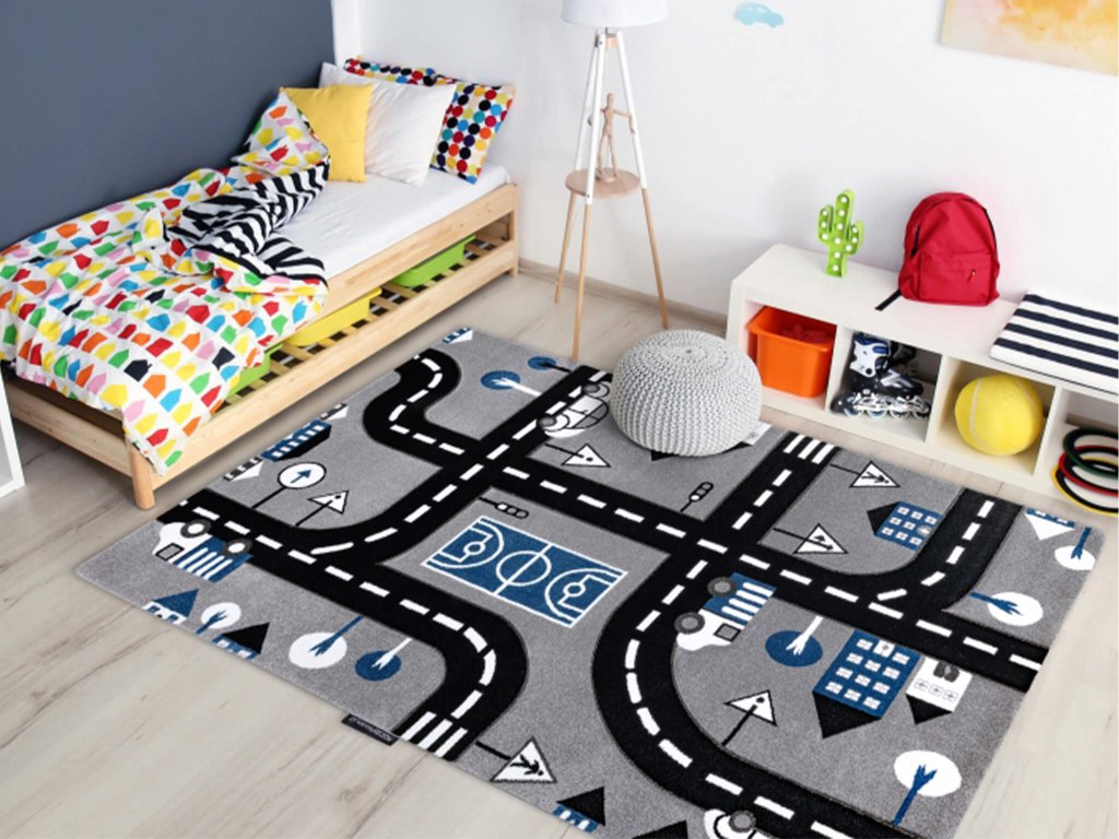 Pre vytvorenie bezpečného a hravého miesta pre vaše deti stačí do detskej izby pridať koberec. Koberec napomáha zachytávať prach a alergény, vytvára bezpečnosť a zároveň koberec Streets je hravá hracia plocha pre vášho syna. Koberec pre deti s motívom ulíc sa skladá zo štetín, ktorých hustota je 2500g/m2 . Výška vlasu je 13 mm t.j ide o stredne dlhý vlas. Vlákno z ktorého je koberec vyrobený je 100 % polypropylén (PP), ktorý mäkký a pružný vďaka svojmu tepelnému spracovaniu. Vyznačuje sa odolnosťou proti oderu. Čo určite oceníte je jednoduchá údržba. Je k dispozícii vo viacerých rozmeroch.