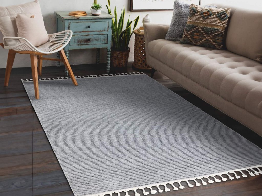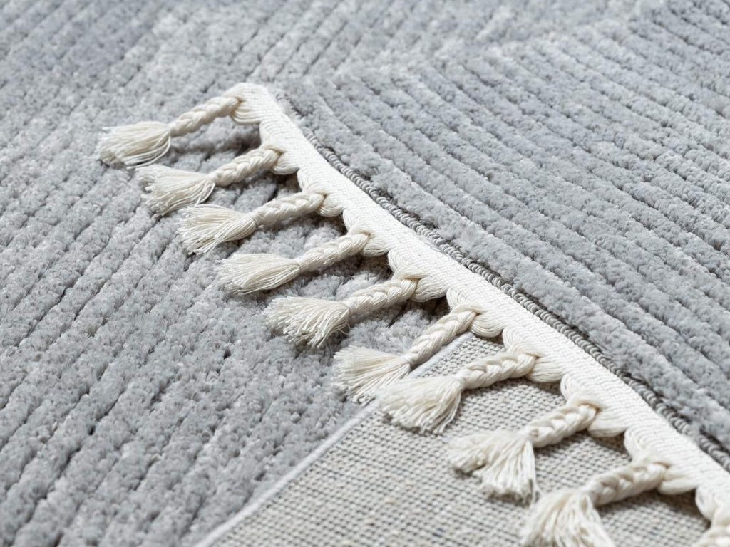 Predstavujeme vám koberec Vesla. Je vyrobený z kvalitného 100% polyesteru, čo zaručuje jeho trvanlivosť a odolnosť voči opotrebovaniu. Vesla sa vyznačuje vrúbkovaným motívom, ktorý kombinuje dve rôzne dĺžky vlasov, čo vytvára zaujímavý priestorový efekt a dodá vašej miestnosti špeciálnu atmosféru. Jeho sivá farba je elegantná a ľahko sa hodí k rôznym typom interiéru. Koberec Vesla je vybavený zapletanými strapcami na koncoch, čo mu dodáva ďalší dizajnový prvok. Čistenie tohto koberca je veľmi jednoduché, čo vám ušetrí čas a starosti. Okrem toho je ideálny aj na použitie s podlahovým kúrením, čo zabezpečí, že vaše nohy budú vždy teplé a v komforte. S rôznymi dostupnými rozmermi je koberec vhodný pre rôzne miestnosti vo vašom dome, vrátane spálne, obývačky, kuchyne alebo chodby. Jeho moderný dizajn ľahko zapadne do rôznych interiérov a dodá im šmrnc. Koberec Vesla je skvelou voľbou pre tých, ktorí hľadajú elegantný a funkčný doplnok do svojho domova. Dajte svojmu interiéru štýlový vzhľad a pohodlie s týmto kobercom, ktorý spĺňa všetky vaše požiadavky.