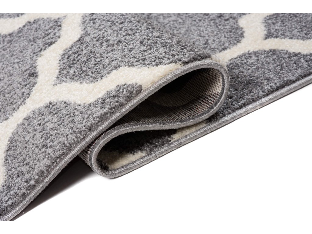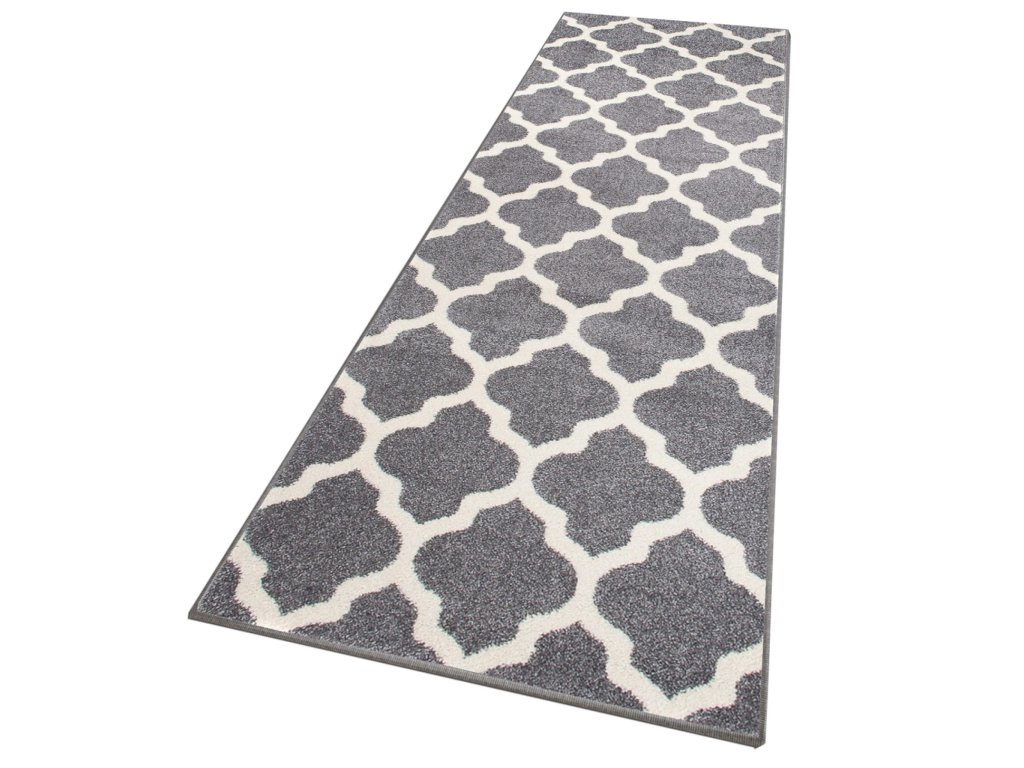 Sivo-biely koberec Marine sa vyznačuje hustými štetinami 2 200 g/m2 typu Frieze s výškou vlasu 10 mm. Polypropylénové vlákna majú vynikajúcu mäkkosť a pružnosť. Koberec sa nedoformuje, je odolný voči oderu a ľahko sa čistí. Vyznačuje sa svojim moderným geometrickým dizajnom. Tento behúň je možné použiť v kuchyni alebo na chodbe. Skvele doplní moderný i klasický interiér.