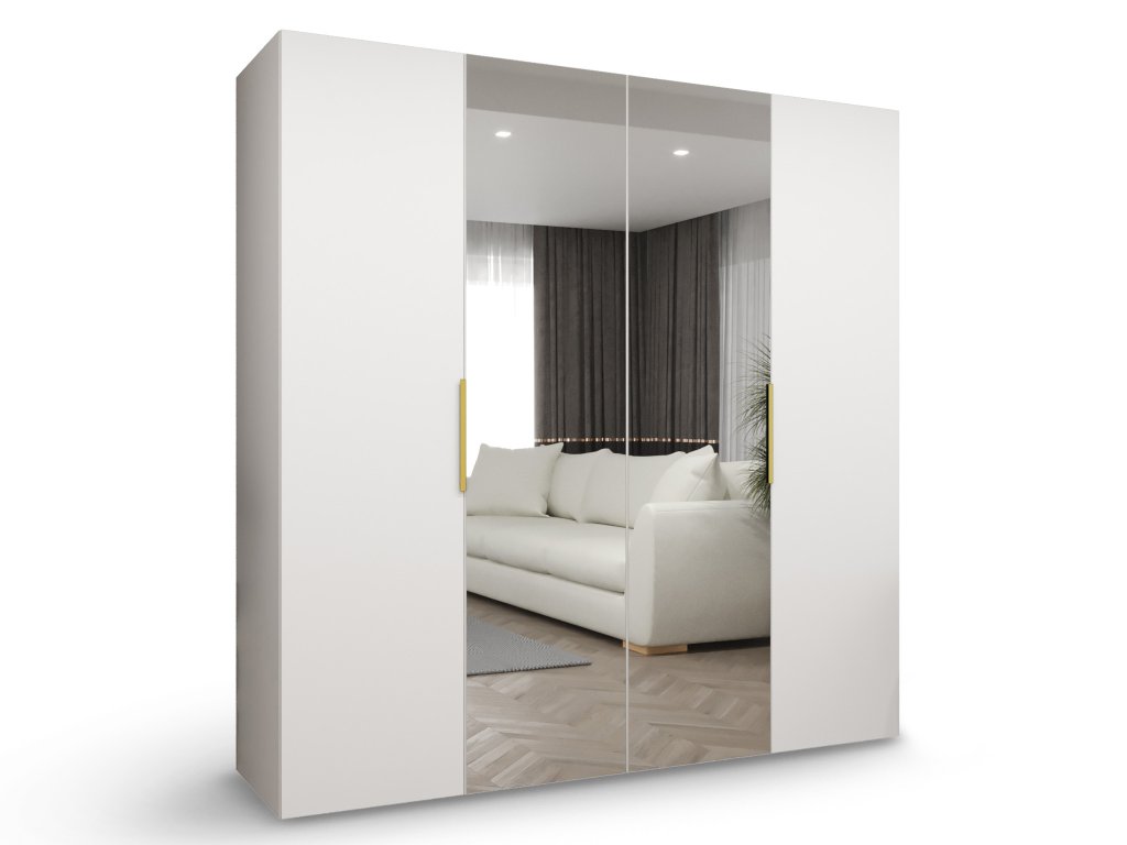 Hľadáte elegantný nábytkový doplnok na uskladnenie vášho oblečenia, ktoré zapadne do akéhokoľvek moderného interiéru? Táto šatníková skriňa Marbella 2 so šírkou 200 cm v matnej bielej farbe spája štýlový vzhľad s praktickým využitím. Skladá sa so skrine Marbella 2 100. Môžete ju jednoducho vložiť napríklad do spálne, predsiene alebo detskej izby. Vďaka štyrom dverám ponúka dostatok priestoru pre oblečenie, doplnky aj sezónne veci. Na čelách dverí sa nachádza zrkadlo, ktoré opticky zväčší priestor a je zároveň skvelým pomocníkom pri každodennom obliekaní. Čierne hliníkové úchytky dokonale ladia s matným povrchom skrine a dodávajú jej moderný vzhľad. Vnútro skrine je prakticky členené. Má kovové tyče na zavesenie oblečenia a pevné police na všetko ostatné. Stabilitu a odolnosť zaručuje kvalitná 16 mm laminovaná doska, spevnené PVC hrany a zadná stena z HDF.