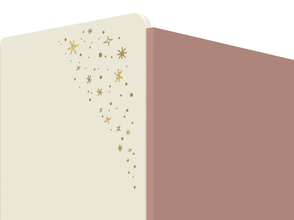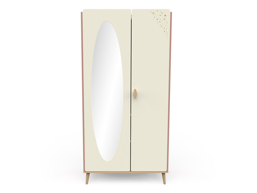 Detská skriňa Suzie je štýlovým a praktickým doplnkom do každej detskej izby. Jej jemný dizajn v ružovej a krémovej farbe zdobia krásne rozprávkové hviezdičky. Skriňa je vybavená praktickým zrkadlom. Taktiež aj stabilnými nožičkami z masívneho dubu, ktoré zabezpečujú pevnosť a odolnosť. Dvojdverová konštrukcia poskytuje dostatok priestoru na zavesenie oblečenia na tyč, ako aj na uloženie ďalších vecí na dvoch policiach. Šatníková skriňa je vyrobená z kvalitnej MDF dosky a drevotriesky. Skriňa Suzie je priestranná a zároveň kompaktne riešená tak, aby sa hodila do izby bábätka, ale aj tínedžera.