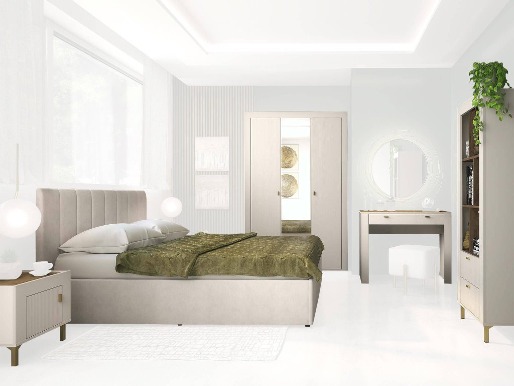 Spálňa Mossa predstavuje dokonalé spojenie elegancie, praktickosti a moderného dizajnu pre každú spálňu. Táto kolekcia v jemných béžových odtieňoch, pripomínajúcich kašmír, s detailmi v dekore dubu whisky, ponúka komplexné riešenie pre zariadenie štýlovej a útulnej spálne. Spálňa Mossa je navrhnutá s dôrazom na komfort a funkčnosť, čo ju robí ideálnou voľbou pre tých, ktorí hľadajú nábytok spájajúci estetiku s praktickým využitím. Zvoľte túto kolekciu pre útulnú a štýlovú spálňu, kde budete radi oddychovať a tráviť čas.
