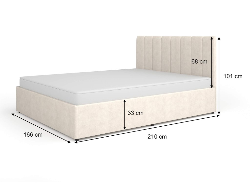 - Čalúnená manželská posteľ s úložným priestorom Mossa - krásna posteľ s vysokým čelom ktorá je ideálna pre komfortný spánok vďaka obľúbenému rozmeru 160x200 pre matrac. Rozmery (šxvxh): 210 x 166 x 33 cm