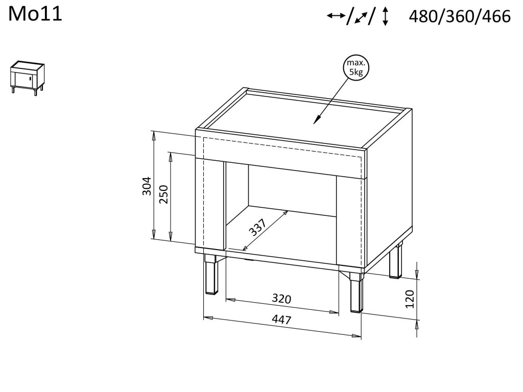 - Nočný stolík Mossa 11 (2ks) - esteticky krásna krabička na štyroch vysokých nohách ktorá vám poskytne praktický úložný priestor k posteli. Rozmery (šxvxh): 48 x 46,6 x 16 cm