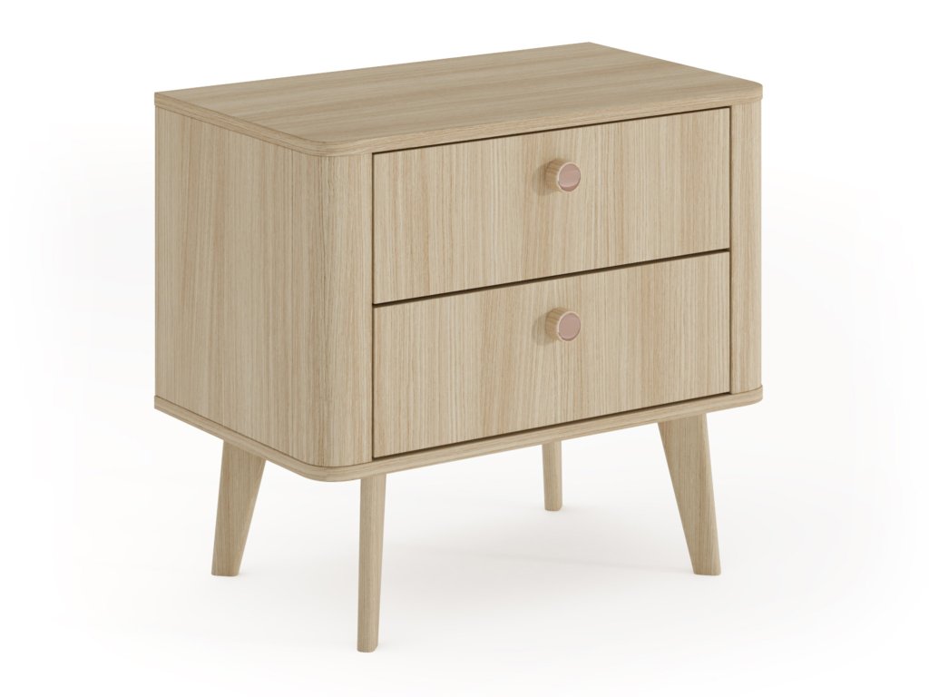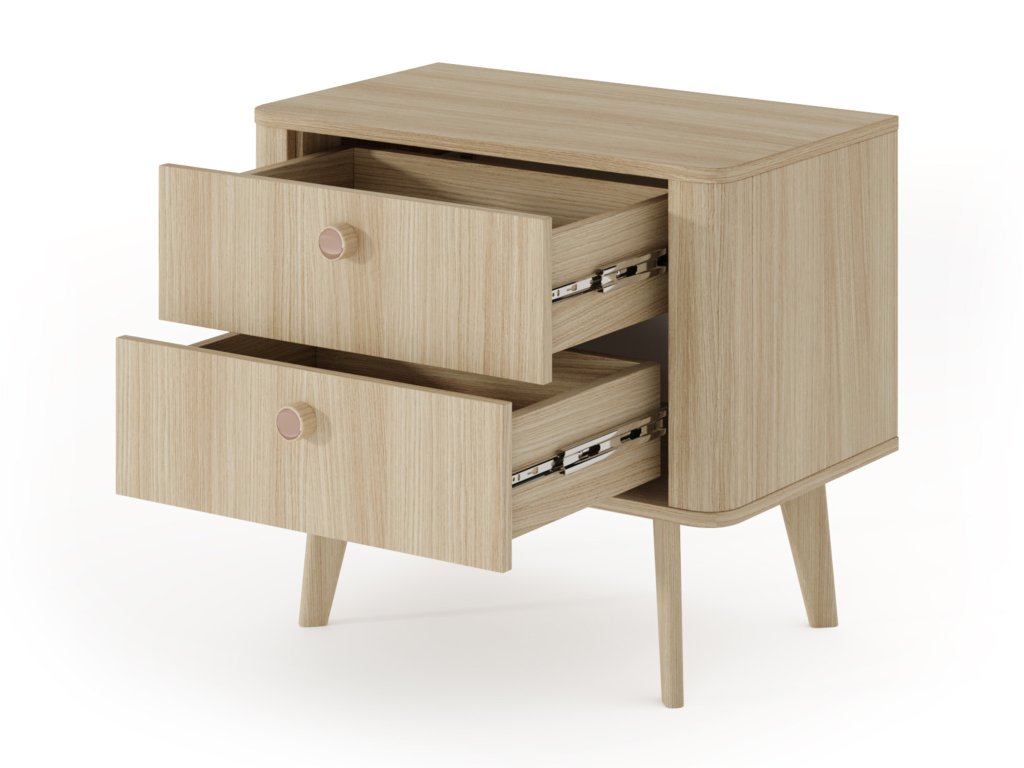 - 2x Nočný stolík Viki s dvoma zásuvkami a drevenými nohami dodá spálni ľahkosť a poskytne praktické miesto na uloženie drobností. Rozmery (šxvxh): 63,2 x 57,3 x 38 cm