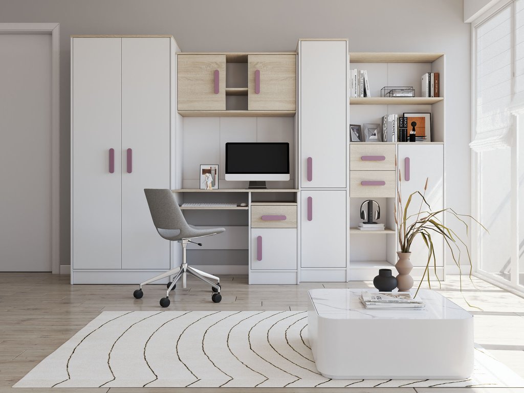 Študentské nábytkové zostavy sú ideálnym riešením pre menšie detské izby, kde dospievajúcemu mládencovi alebo slečne poskytnú všetko, čo potrebuje. Veľká skriňa sa postará o priestor na organizáciu oblečenia, police a menšie skrinky poskytnú priestor na osobné veci a rôzne poklady, ale nájdeme tu hlavne aj pracovný stôl, pri ktorom sa môžu učiť a zmestí sa naň aj počítač alebo laptop. Za moderný dizajn sa dieťa nebude hanbiť ani na prahu dospelosti v prípade, že ho v detskej izbe navštívia priatelia alebo spolužiaci.