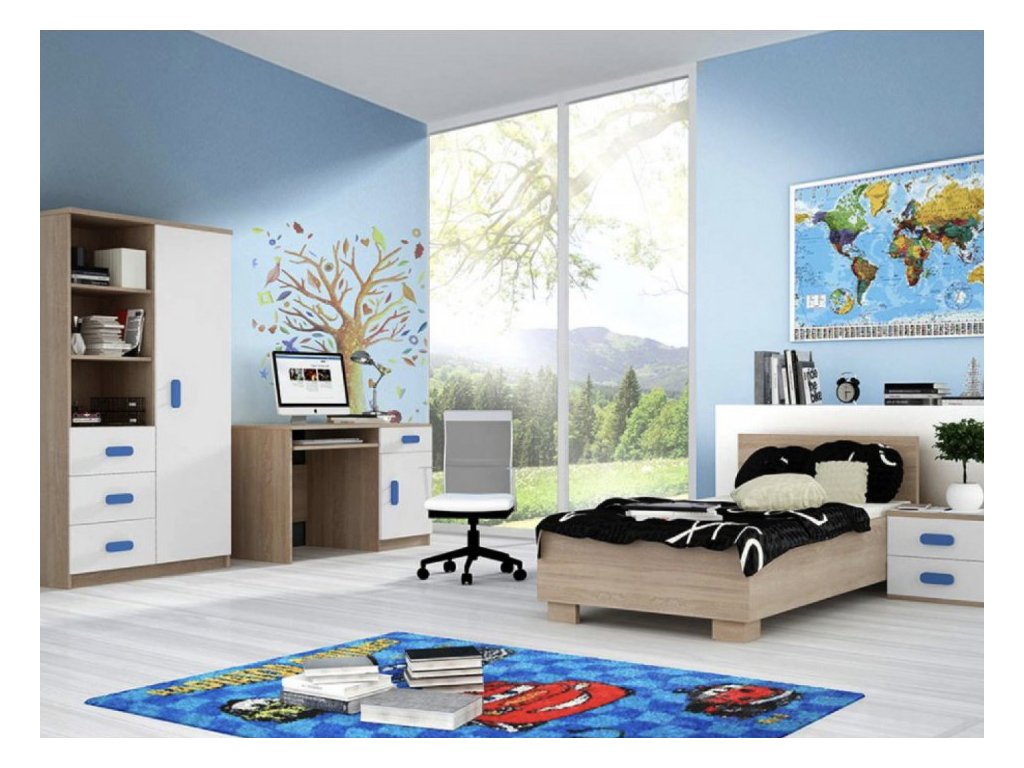 Detská izba sa skladá z: písacieho stola, regálu, detskej postele 90x200 cm a nočného stolíka.