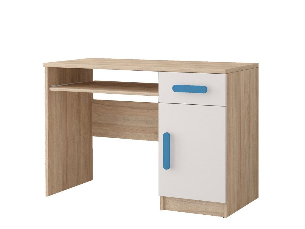 - Písací stôl je vybavený jednodverovou skrinkou, zásuvkou a výsuvnou doskou pre klávesnicu počítača. Rozmer (šxvxh): 110 x 76 x 50 cm.