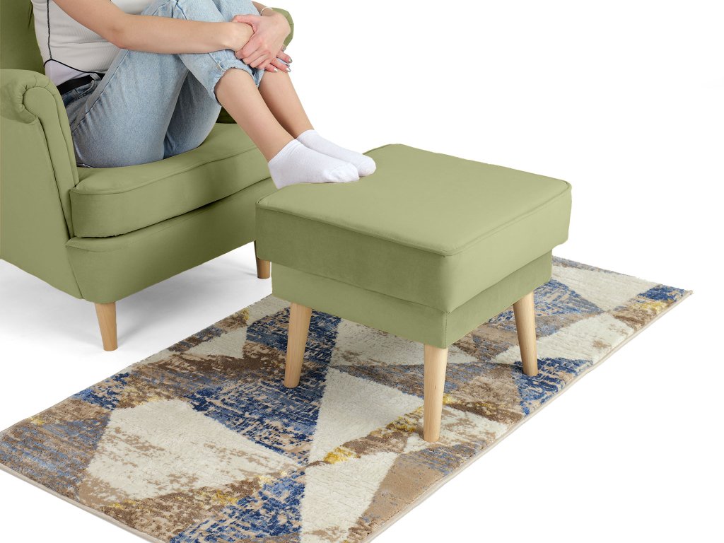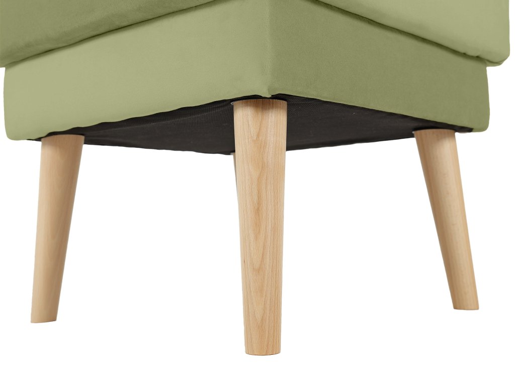 Sedacia časť je vyplnená penou strednej tvrdosti (T30), ktorá poskytuje príjemný komfort pri sedení aj pri používaní ako podnožka. Stabilitu zabezpečujú nožičky z masívneho prírodného dreva, ktoré dodávajú nielen pevnosť, ale aj elegantný vzhľad. Využiť ho môžete na pohodlné podopretie nôh, ako dodatočné miesto na sedenie alebo ako dekoratívny prvok, ktorý zútulní a oživí váš interiér.
