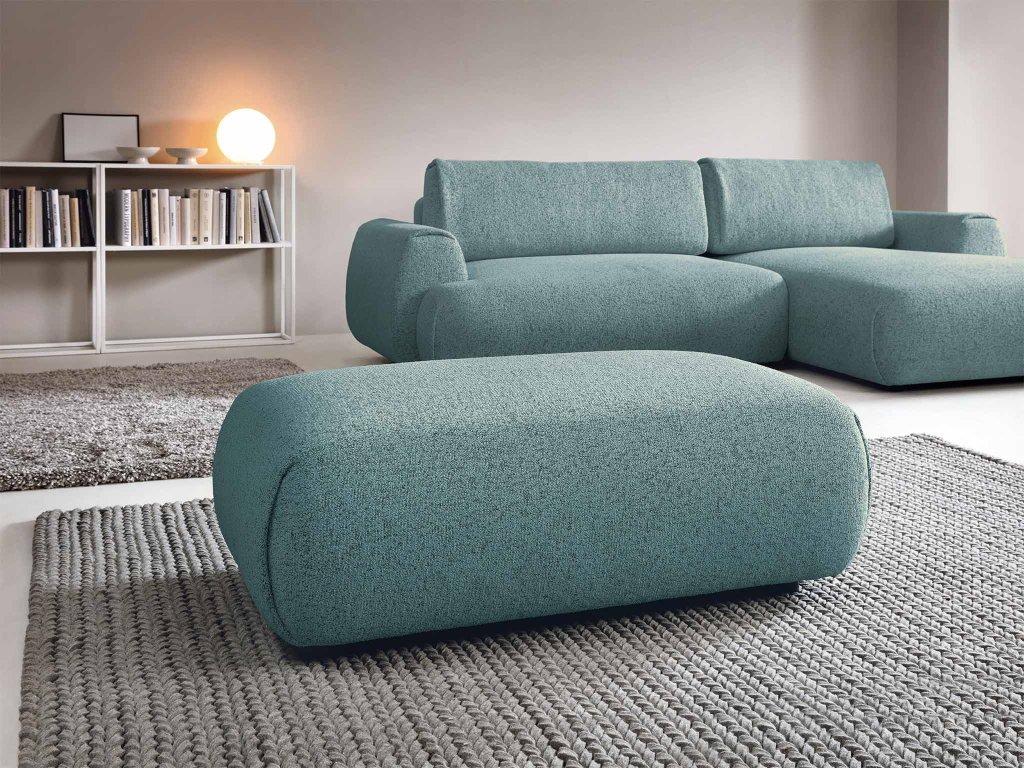 Čalúnenie tohto modrého taburetu je látkou Puente, ktorá sa vyznačuje melanžovou väzbou v odtieňoch modrej s prepletenými čiernymi a bielymi vláknami. Vďaka tomu je látka nielen odolná proti opotrebeniu, ale aj vizuálne bohatá. Spĺňa prísne požiadavky certifikátu OEKO-TEX Standard 100, čo potvrdzuje jej ekologickú nezávadnosť. Tento taburet je skvelou investíciou do pohodlia a dizajnu, ktoré pretrvajú roky. Taburet dokonale ladí s rohovou sedačkou Bocket a poskytne vám extra komfort.