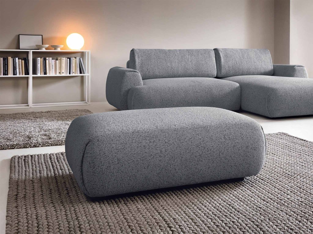 Tento sivý taburet je čalúnený látkou Puente, ktorá je známa svojou vysokou odolnosťou a jednoduchou údržbou. Jej melanžová textúra, tvorená prepletenými sivými a bielymi niťami, dodáva taburetu decentný a elegantný vzhľad. Látka je vyrobená podľa štandardov OEKO-TEX Standard 100, čo potvrdzuje jej bezpečnosť a kvalitu. S týmto taburetom získate nielen štýlový, ale aj odolný a dlhotrvajúci kúsok nábytku. Taburet je ideálny ako doplnok k rohovej sedačke Bocket.