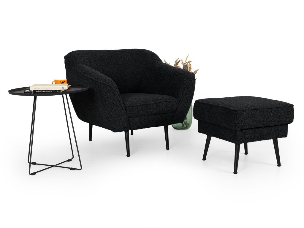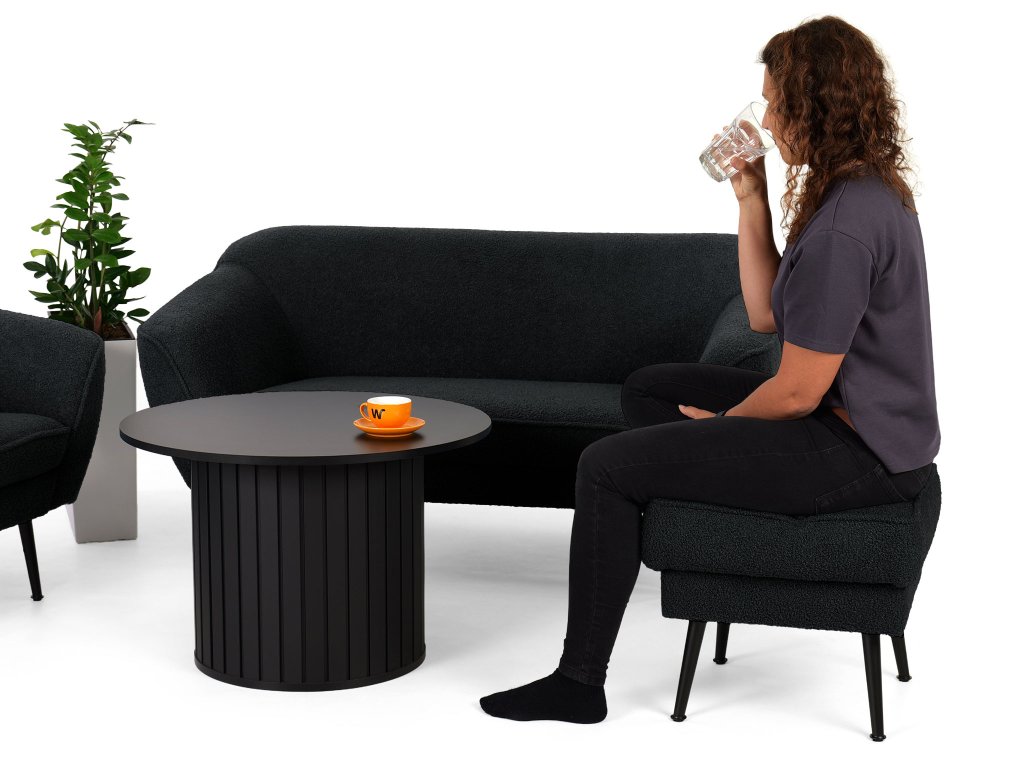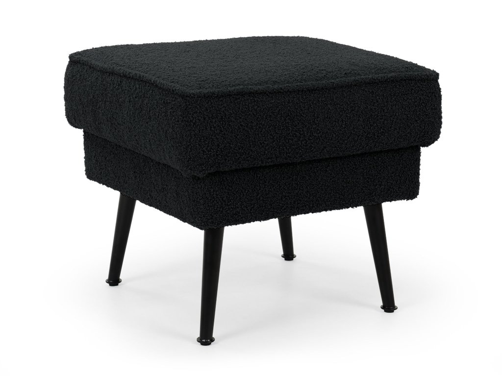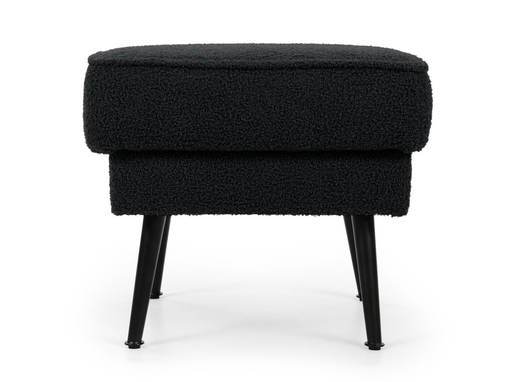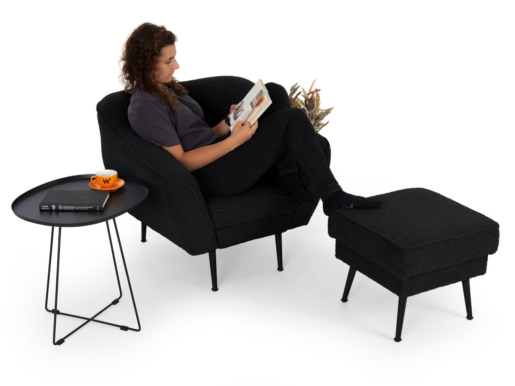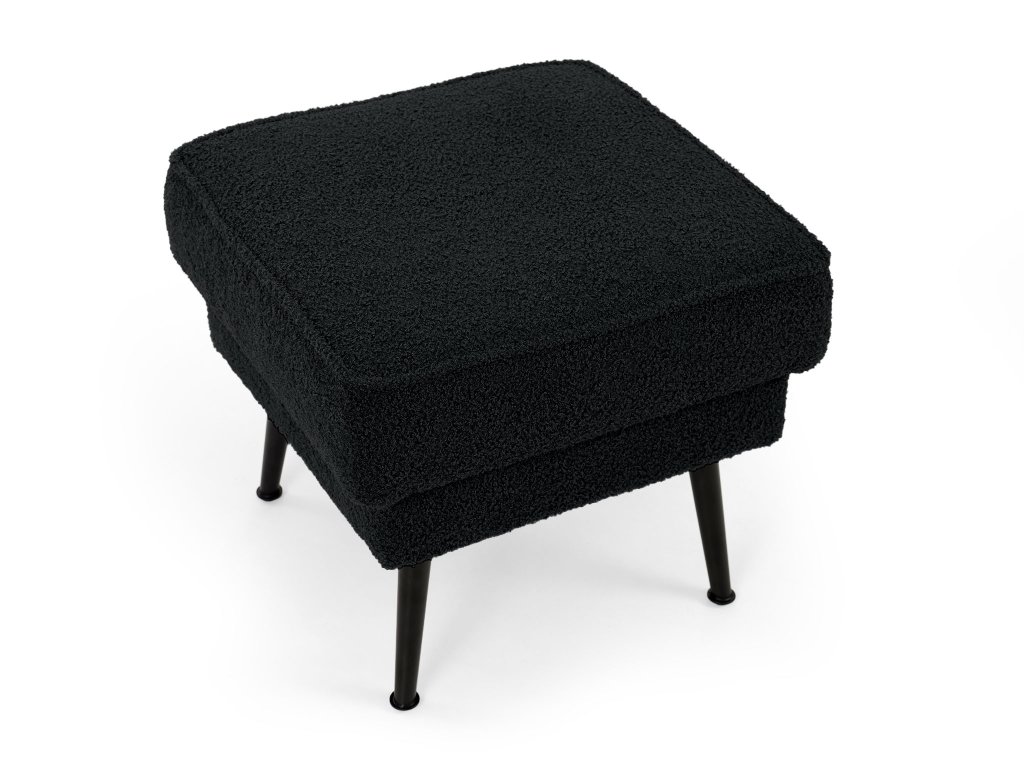 Taburet Bowy je esenciou škandinávskeho štýlu a dokonalým doplnkom k rovnomennej pohovke. Tento kompaktný a mimoriadne praktický kus nábytku je vyrobený z rovnako kvalitných a odolných materiálov ako celá kolekcia. V čiernom prevedení sa stane elegantným a moderným akcentom vášho interiéru. Je čalúnený populárnou baránčekovou látkou Now or Never, ktorá je známa svojou jemnou, hrejivou textúrou a vysokou odolnosťou voči opotrebeniu. Vďaka tejto látke je taburet nielen príjemný na dotyk, ale aj vizuálne zaujímavý. Stojí na pevných čiernych kovových nohách, ktoré zabezpečujú stabilitu a ladia s minimalistickou estetikou. Taburet Bowy môžete využiť ako pohodlnú opierku na nohy alebo provizórne sedenie pre hostí.