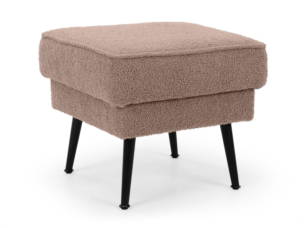 Oživte svoj priestor dávkou šarmu a farieb s taburetom Bowy v romantickom ružovom prevedení. Tento funkčný a štýlový kúsok dokonale dopĺňa línie škandinávskeho štýlu a prináša hravý, no pritom elegantný akcent do každej miestnosti. Je čalúnený trendovou buklé látkou Now or Never. Jej mäkká, štruktúrovaná povrchová úprava v ružovom odtieni je vizuálne príťažlivá a mimoriadne príjemná na dotyk. Taburet je postavený na pevných a decentných čiernych kovových nohách, ktoré vytvárajú moderný kontrast a zabezpečujú výbornú stabilitu. Využite ho ako príležitostné sedenie, dizajnovú opierku na nohy alebo ako originálny nočný stolík.