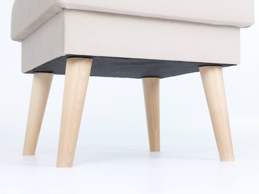 Taburet Deana je dokonalý doplnok k sedačke či pohovke ale hravo poslúži aj ako podnožka ku kreslu ušiak. Neváhajte si zvýšiť svoj komfort tým, že si budete môcť jednoducho vyložiť nohy na tento štýlový doplnok interiéru. Podnožka je vyrobená z prvotriednych materiálov. Taburet podopierajú pevné nožičky z prírodného dreva. Taburet je potiahnutý látkou Riviera, výberovým francúzskym velúrom, ktorý je veľmi príjemná na dotyk. Táto látka aj nádherne odráža svetlo, vďaka čomu krásne rozjasní každú miestnosť kde sa taburet nachádza. Látka je tiež veľmi odolná proti oderu a pri používaní sa má tendenciu lesknúť.