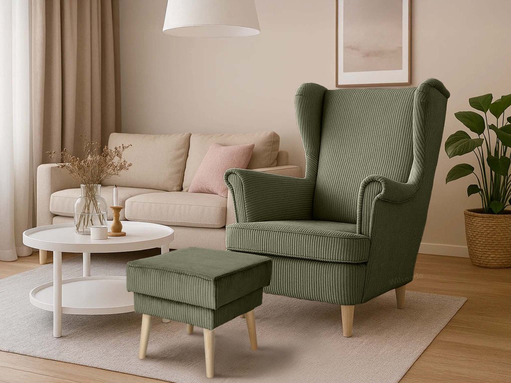 Vytvorte si harmonický kútik na relax. K olivovému menčestru sa výborne hodia naše pohovky v rovnakej farbe alebo neutrálnych tónoch. Pre ešte väčšie pohodlie doplňte interiér o dekoračné vankúše alebo hrejivé deky.