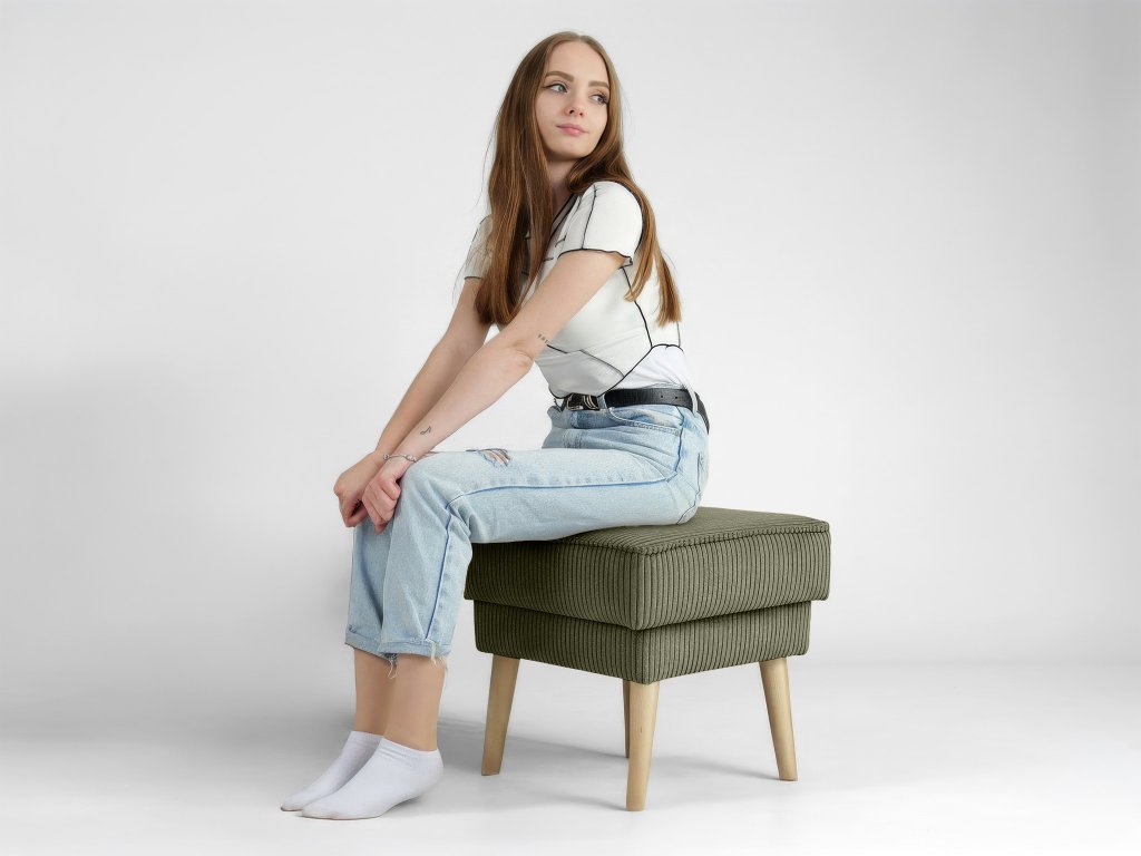 Vďaka kompaktným rozmerom a nosnosti 80 kg nájde táto taburetka uplatnenie v každej miestnosti. V obývačke poslúži ako pohodlná taburetka pod nohy pri sledovaní TV, v spálni k toaletnému stolíku alebo v predsieni pri obúvaní. Olivový odtieň a menčester sú momentálne veľkým trendom, vďaka čomu sa radia medzi žiadané dizajnové taburetky súčasnosti.
