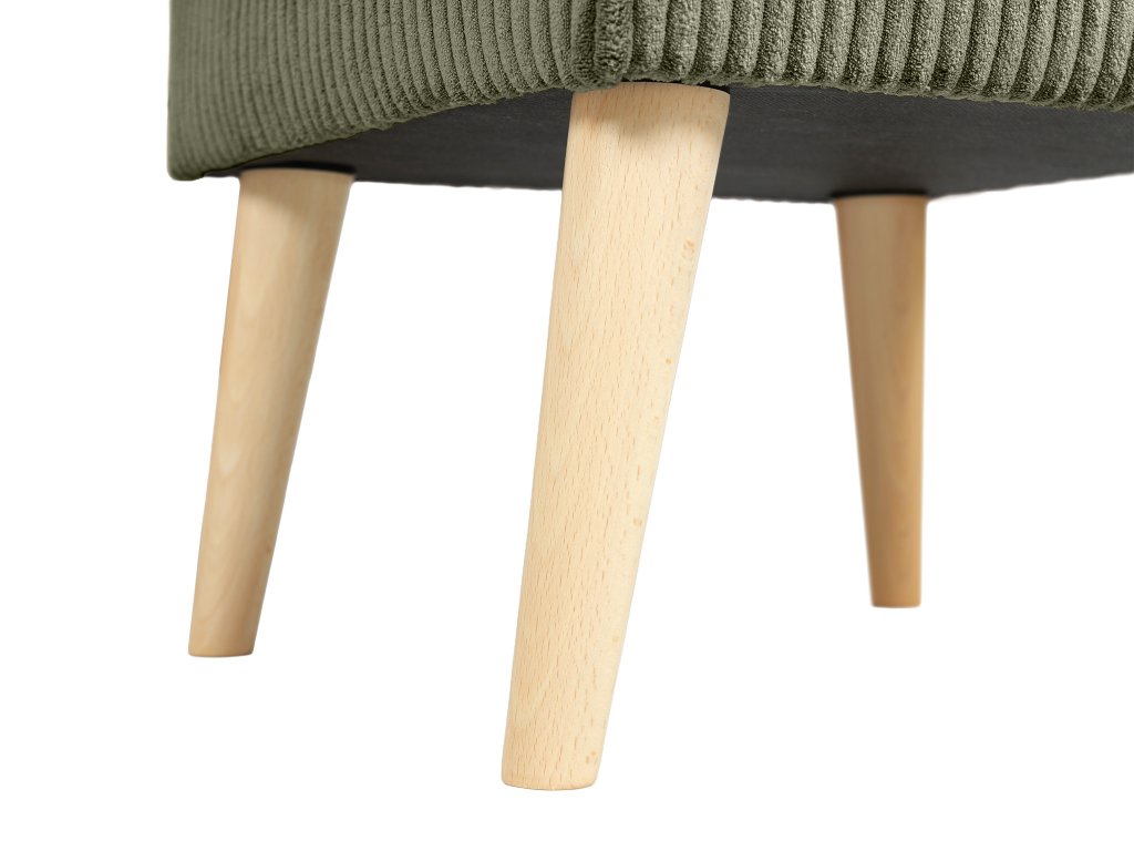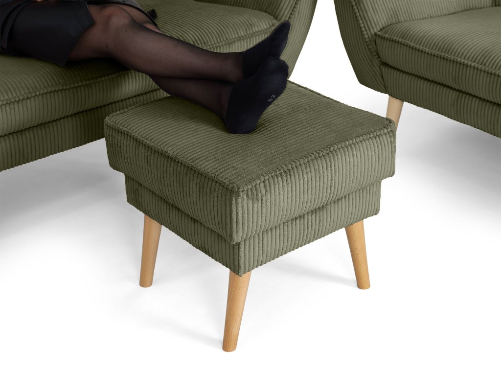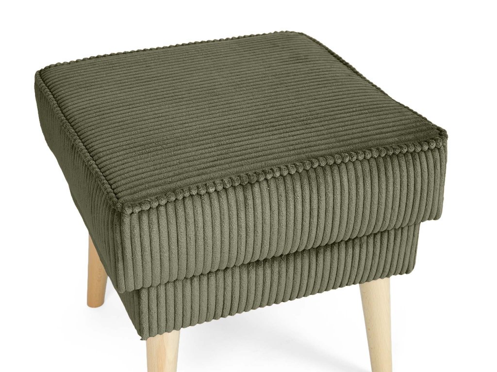 Látka Lincoln dodáva taburetu Dory unikátny 3D efekt. Široké prúžky menčestru nielen skvele vyzerajú, ale sú aj praktické – látka je trvácna a ľahko sa udržiava. Olivová farba v tejto textúre nádherne pracuje so svetlom, čím dodáva nábytku hĺbku a luxusný vzhľad.