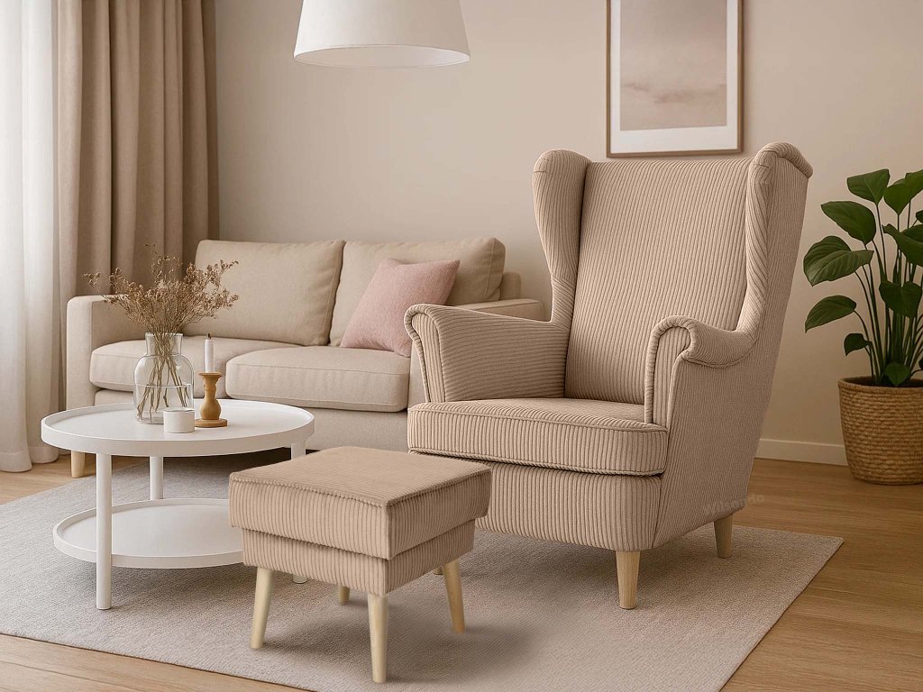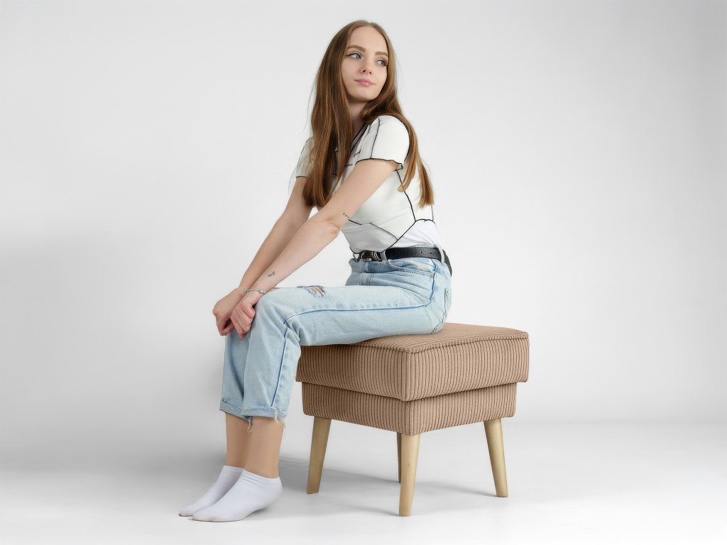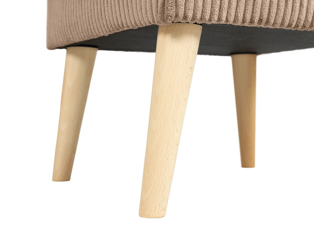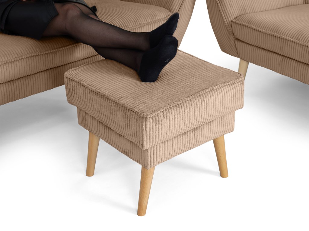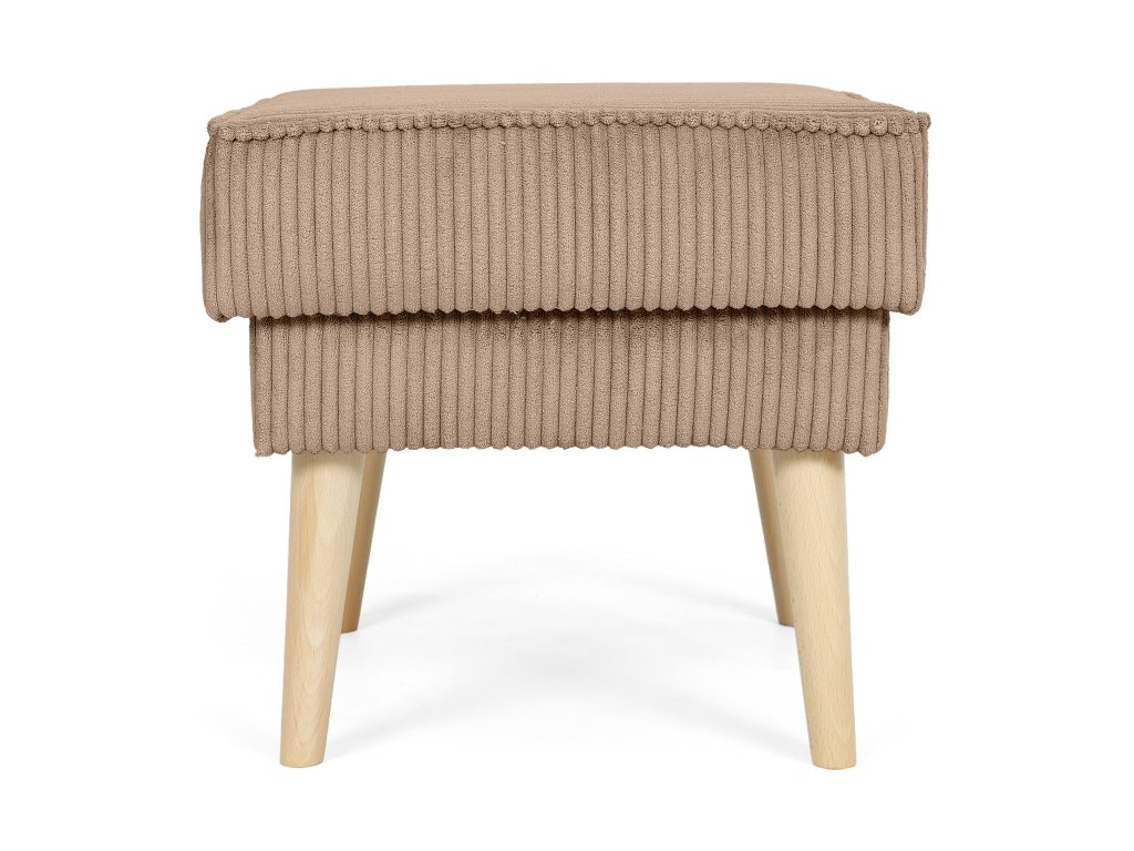 Elegantný taburet Dory v jemnom hnedom odtieni sa stane praktickým spoločníkom vo vašej domácnosti. Tútp všestrannú taburetku oceníte vždy, keď si budete chcieť po náročnom dni dopriať oddych a vyložiť nohy, no v prípade potreby ju využijete aj ako doplnkové sedenie pre návštevy či rodinu. Vynikajúco doplní vaše obľúbené kreslo ušiak a vytvorí dokonalé miesto na relax s knihou alebo pri televízii. Taburet je potiahnutý kvalitnou látkou Lincoln, ktorá je odolná voči každodennému používaniu a zároveň pôsobí príjemne na dotyk. Jemná prúžkovaná štruktúra poťahu dodáva taburetu zaujímavý vzhľad. Stabilitu a dlhú životnosť zaručujú pevné nohy z masívneho dreva vo svetlej prírodnej farbe, vďaka čomu taburet pôsobí vzdušne a elegantne.