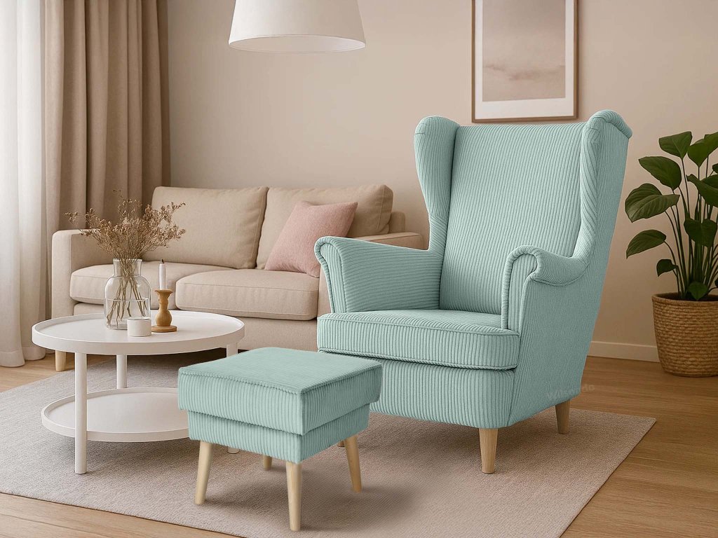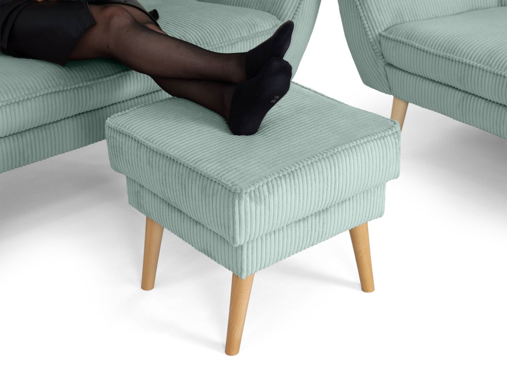 Taburet Dory v mentolovom prevedení predstavuje praktický doplnok, ktorý oceníte v každej miestnosti. Poslúži nielen ako pohodlná opierka pre vaše nohy po náročnom dni, ale tiež ako doplnkové miesto na sedenie, ak k vám zavíta návšteva. Skvele sa hodí k pohodlnému kreslu typu ušiak, kde vám umožní relaxovať v maximálnom komforte. Taburetka je vyrobená z odolných a kvalitných materiálov, ktoré zaručujú jeho dlhú životnosť. Poťahová látka Lincoln sa vyznačuje pevnosťou, príjemným povrchom a jemnou prúžkovanou textúrou. Stabilitu taburetu zabezpečujú štýlové nožičky z masívneho dreva v svetlom prírodnom odtieni.