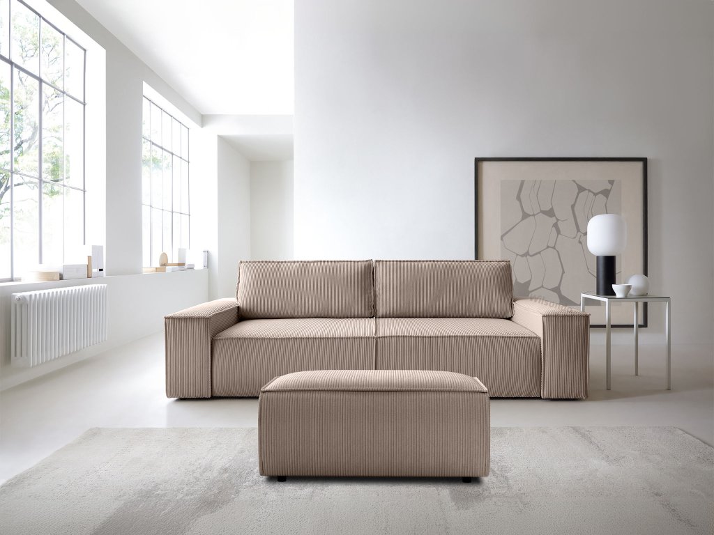 Ak hľadáte praktický, no zároveň štýlový kúsok nábytku, veľký taburet Fiord vás určite nesklame. Vďaka svojmu rozmernému sedaciemu miesti môže slúžiť nielen ako podnožka ku kreslu či pohovke, ale aj ako samostatné miesto na sedenie. Jeho nadčasový vzhľad sa ľahko prispôsobí modernému obývaciemu priestoru, útulnej spálni alebo študentskej izbe. Taburet má čalúnenie z látky s povrchom pripomínajúcim jemný menčester, ktorý pôsobí hrejivo a na dotyk môže pripomínať mäkký plyš. Údržba je nenáročná. Stačí ho z času na čas utrieť navlhčenou handričkou a pri väčšom znečistení použiť prostriedok určený na čalúnený nábytok. Stabilitu mu dodávajú nenápadné plastové nožičky.