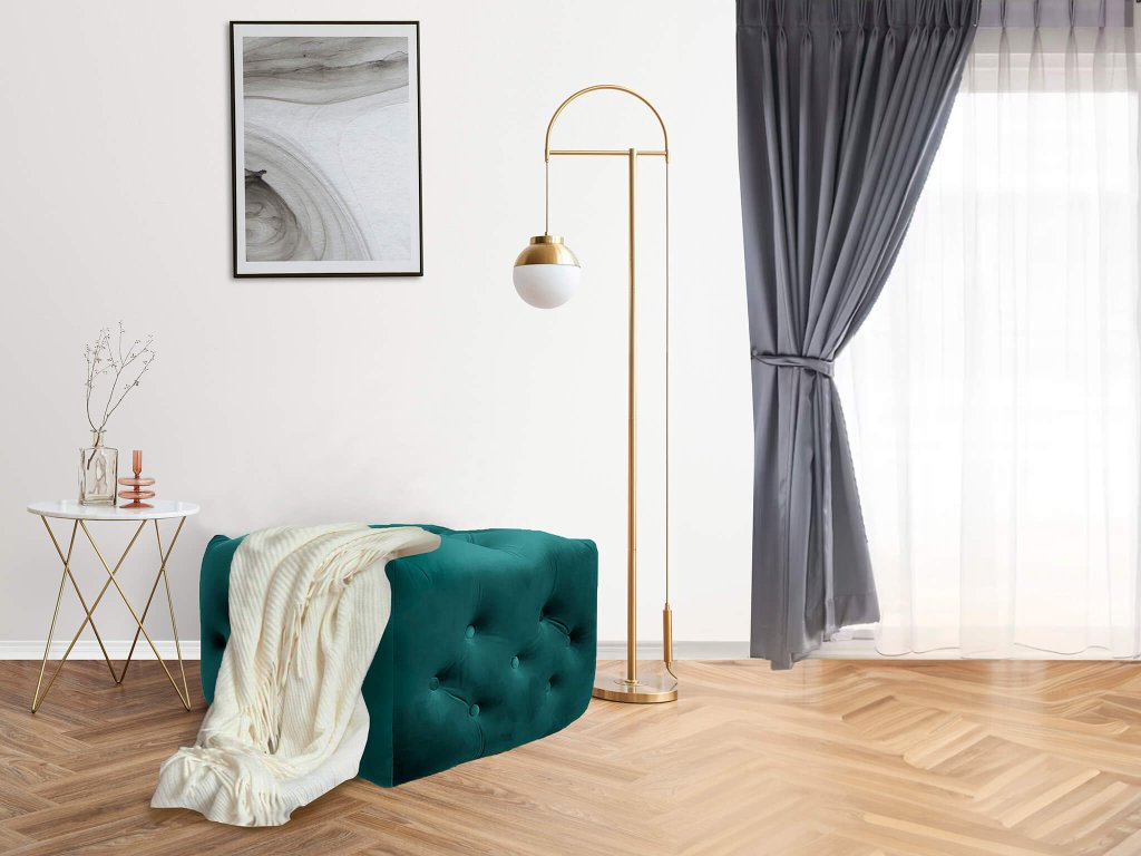 Elegantný a praktický smaragdový taburet Gorm je skvelý doplnok do vášho interiéru. Môžete ju použiť ako taburetku ale aj ako podnož ku kreslu či pohovke. Luxusný dizajn bude krásne vyzerať v obývačke, spálni ale aj študentskej izbe. Štýlový taburet je vyrobený z kvalitných materiálov a čalúnený modernou látkou Velur Royal. Luxusné čalúnenie je doplnené dekoračnými gombíkmi. Jedinečná smaragdová velvetová látka je jemná, príjemná na dotyk a odolná voči žmolkovaniu. Taburet stojí plastových nožičkách. Doplňte váš domov s krásnym taburetom, ktorý poslúži taktiež ako doplnkové sedadlo.
