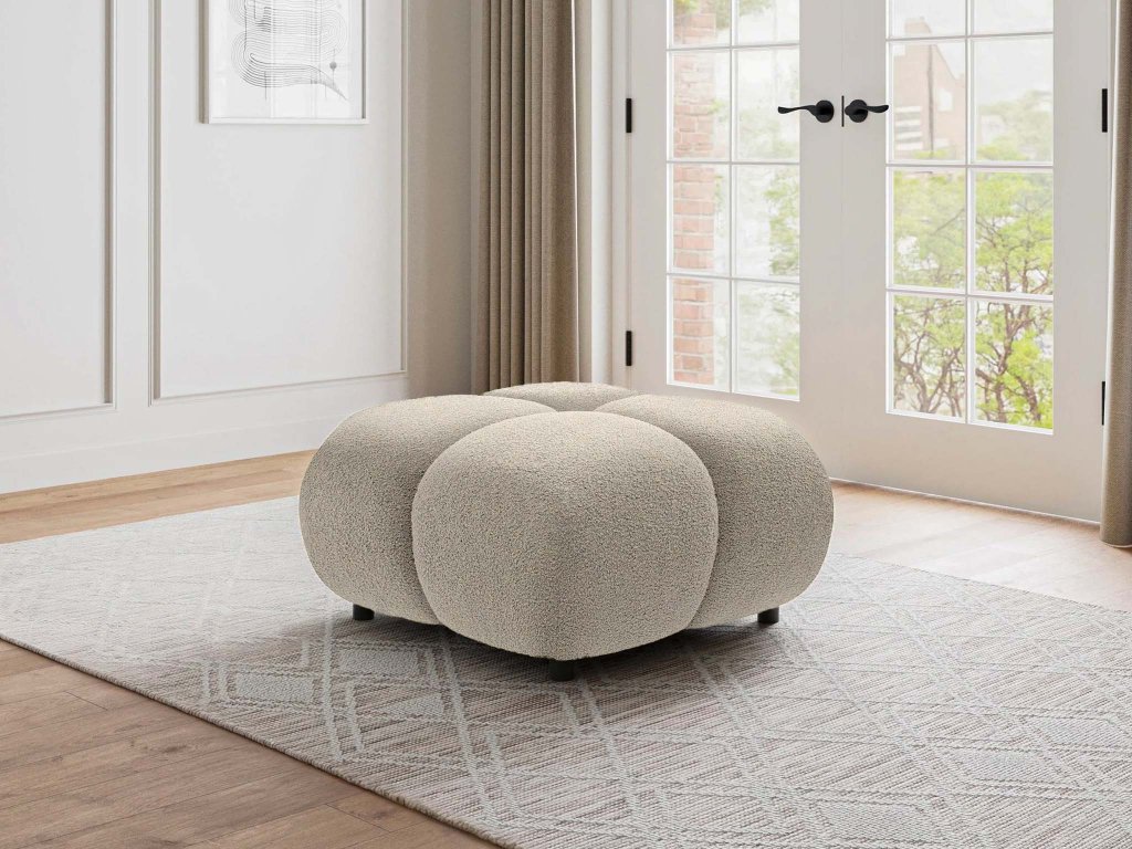 Krémový poťah pôsobí príjemne na dotyk, je odolný voči každodennému používaniu a zároveň vizuálne zaujímavý. Jeho neutrálny odtieň ľahko zladíte s ďalšími farbami v interiéri. Taburet má čisté, mäkké línie, ktoré podčiarkujú jeho moderný, no nadčasový charakter. Vďaka kvalitnému čalúneniu a pevnému spracovaniu poskytuje Milo nielen pohodlie, ale aj dlhú životnosť. Skvele sa hodí do obývačky, pracovne aj spálne – kdekoľvek, kde potrebujete trochu viac komfortu a štýlu.