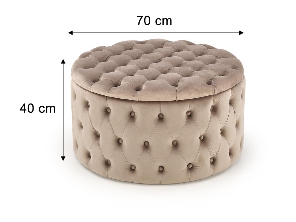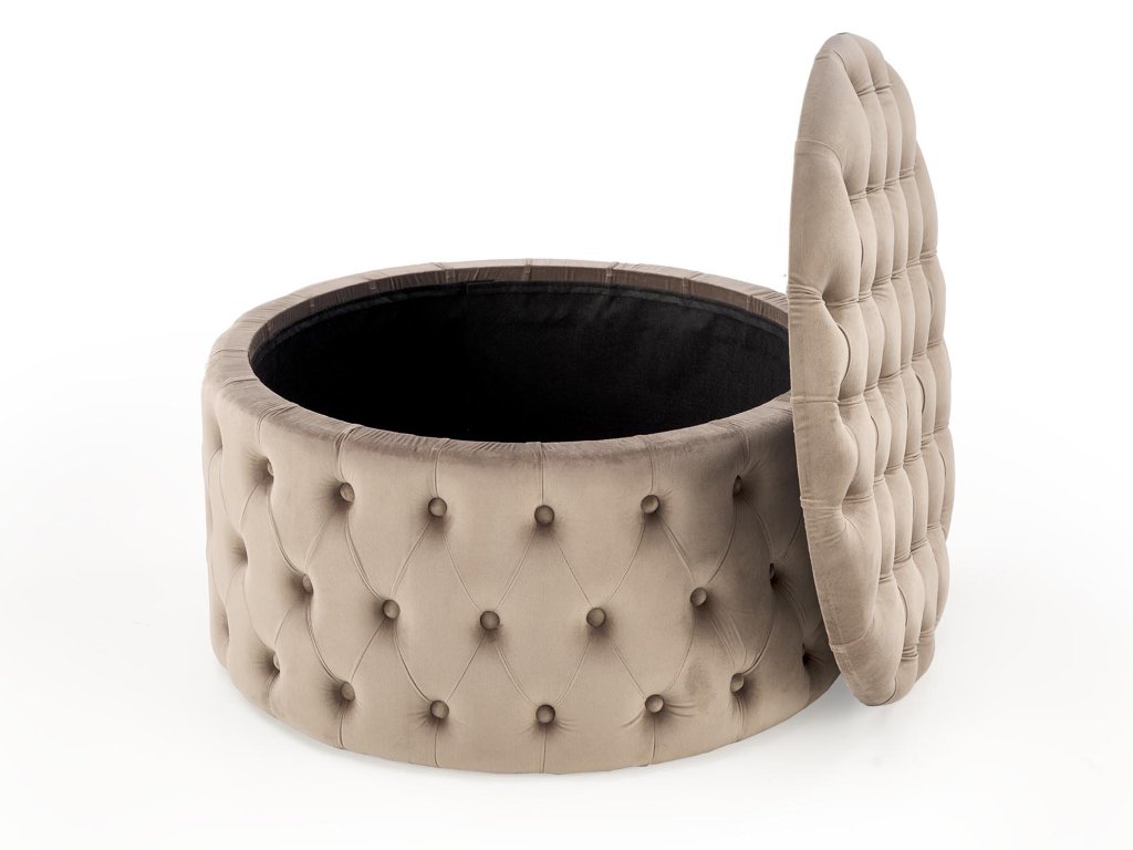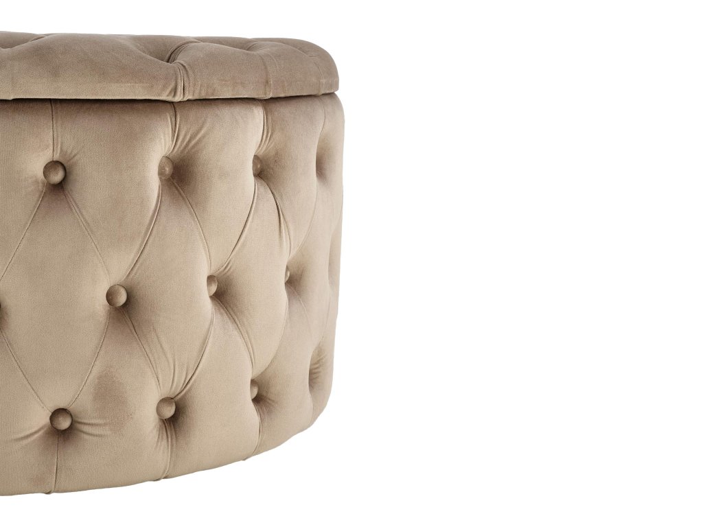 Doplňte svoju sedaciu súpravu o luxusný taburet Nunez, ktorý kombinuje elegantný dizajn so skvelou funkčnosťou. Tento čalúnený kúsok je vyrobený z prvotriednej zamatovej látky a zdobený jemným prešívaním, čo pridáva na jeho sofistikovanom vzhľade. Taburet Nunez je vybavený veľkým úložným priestorom, ktorý je ideálny na uschovanie rôznych drobností – od obľúbených kníh po príjemné deky. Vďaka svojim praktickým vlastnostiam a elegantnému dizajnu sa stane nielen štýlovým doplnkom vášho interiéru, ale aj praktickým pomocníkom pri organizovaní vášho priestoru.