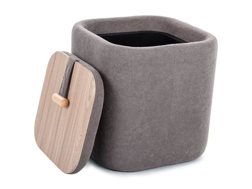 Taburetka Nap v sivej farbe spája elegantný vzhľad a praktické využitie. Mäkký zamatový poťah pôsobí moderne a príjemne na dotyk. Veko je obojstranné – čalúnené na sedenie a drevené na odkladanie. Vo vnútri ukrýva úložný priestor na všetko, čo potrebujete mať poruke. Skvelý doplnok do obývačky, spálne aj predsiene.
