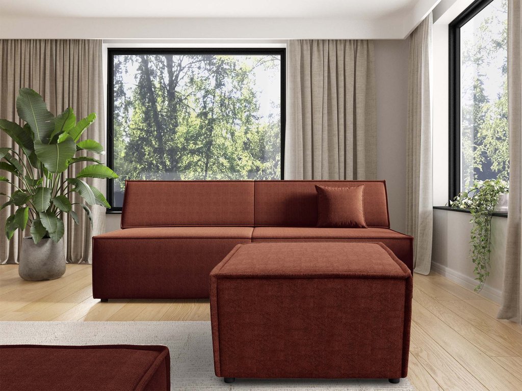 Teplý tehlový odtieň taburetky Tilia dodá interiéru výraz a pocit pohody. Čalúnenie z látky Dunbar s jemnou pleteninovou textúrou je mäkké, príjemné na dotyk, odolné voči škvrnám a jeho údržba je rýchla a jednoduchá. Tento kompaktný kúsok nábytku môžete využiť ako pohodlnú oporu pre nohy, doplnkové sedenie pri návštevách alebo malú odkladaciu plochu v obývačke, spálni či predsieni.