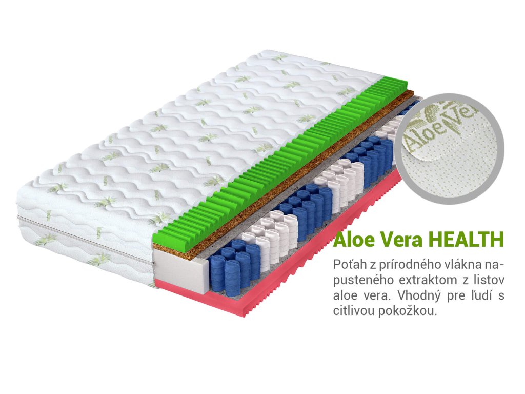 Materiálové zloženie: Filc, NanoHARD taštičkové pružiny, Kokosová vrstva, Polyuretánová PUR pena T25 a T28, Poťah