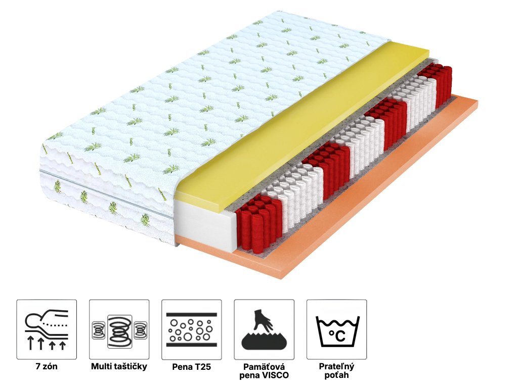 Materiálové zloženie: Pamäťová pena Visco, Filc, Multipocket NanoHARD, Polyuretánová pena, Poťah