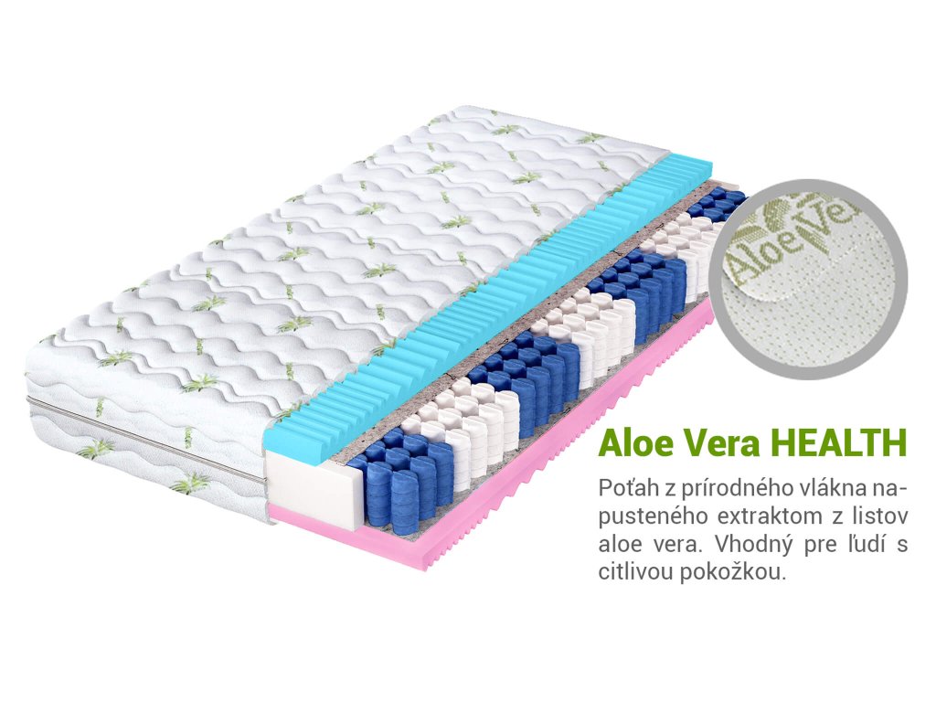 Aloe Vera poťah ktorým tento matrac disponuje je vyrobený z kvalitnej priedušnej látky a je možné ho prať v práčke do 30 stupňov, čo zabezpečuje jednoduchú údržbu a dlhú životnosť matraca. Má taktiež antibakteriálne a protizápalové účinky a je vhodný pre alergikov.
