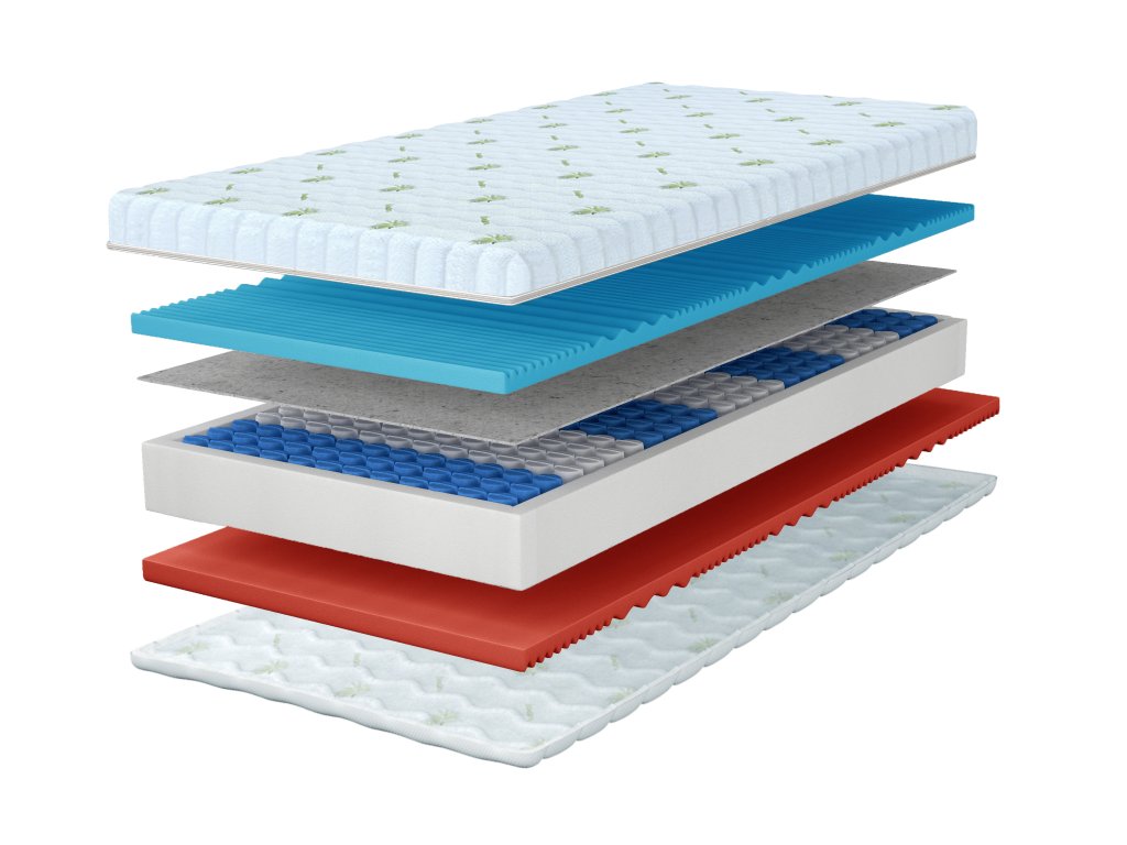Materiálové zloženie: Filc, NanoHARD taštičkové pružiny, Polyuretánová PUR pena T25, Poťah