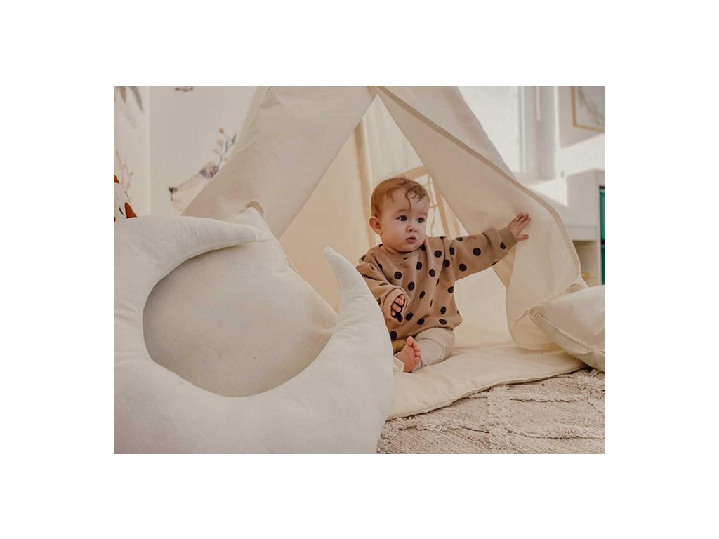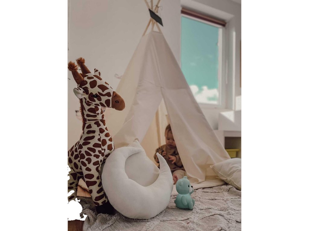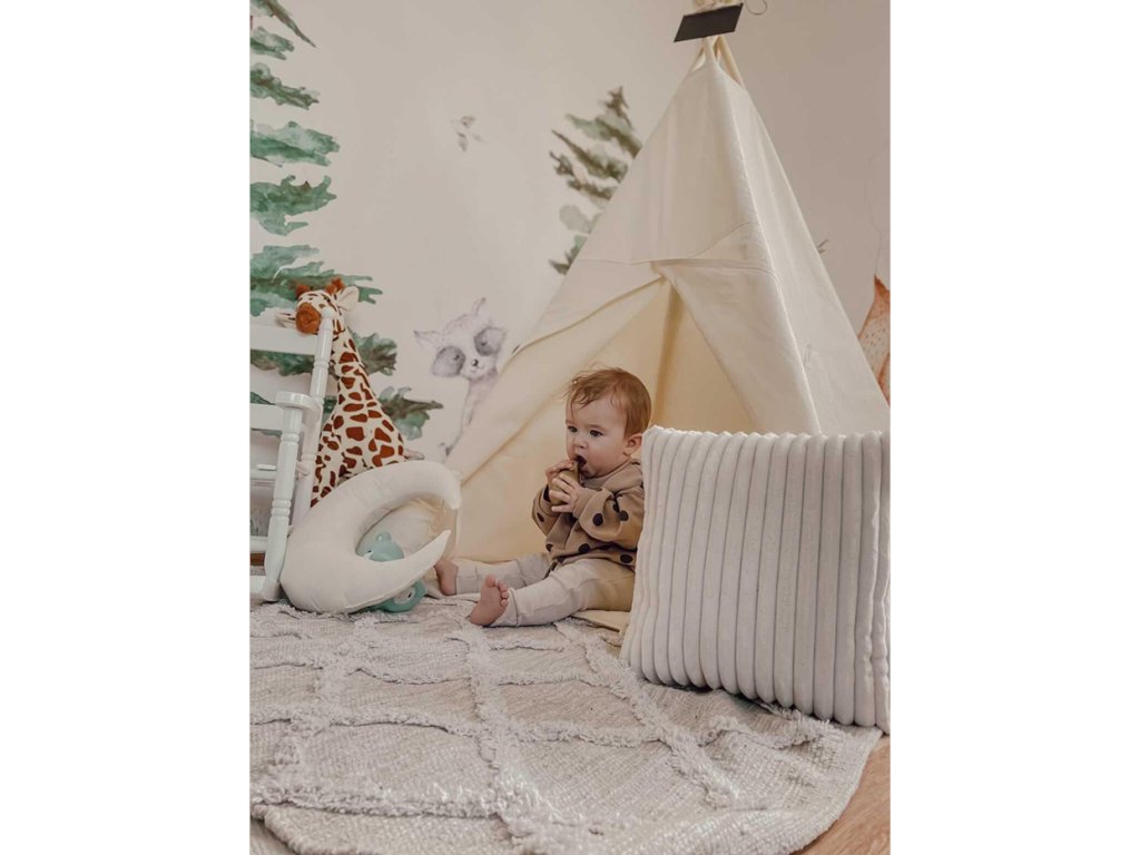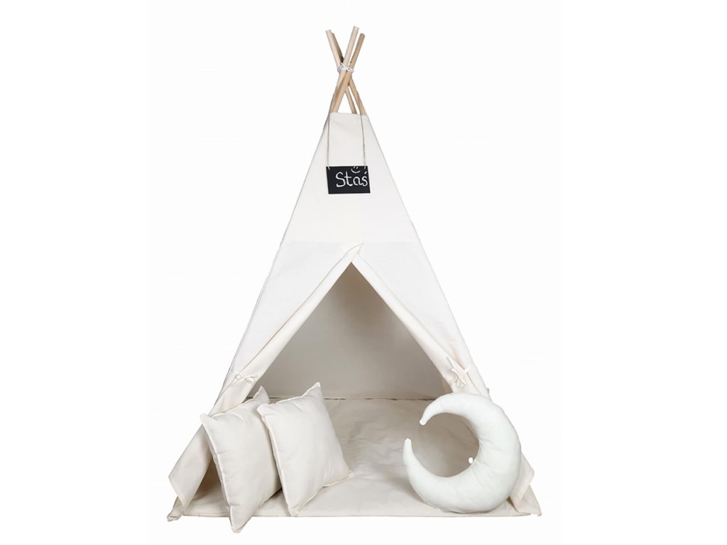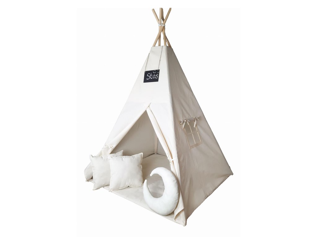 Čarovný svet, rozprávkové postavy či nekonečná detská predstavivosť? To všetko dokáže malý človiečik rozvíjať vo svojom detskom kráľovstve a vďaka teepee stanu bude mat jedinečné miesto, ktoré bude patriť len jemu. Teepee stan je skvelý na poobedný oddych, hranie či čítanie rozprávok. Je vhodný ako prenosný domček, kde drobec zažije veľa dobrodružstiev. Stan je vyrobený z kvalitného materiálu v neutrálnej farbe, s hrubou podložkou a vankúšmi.