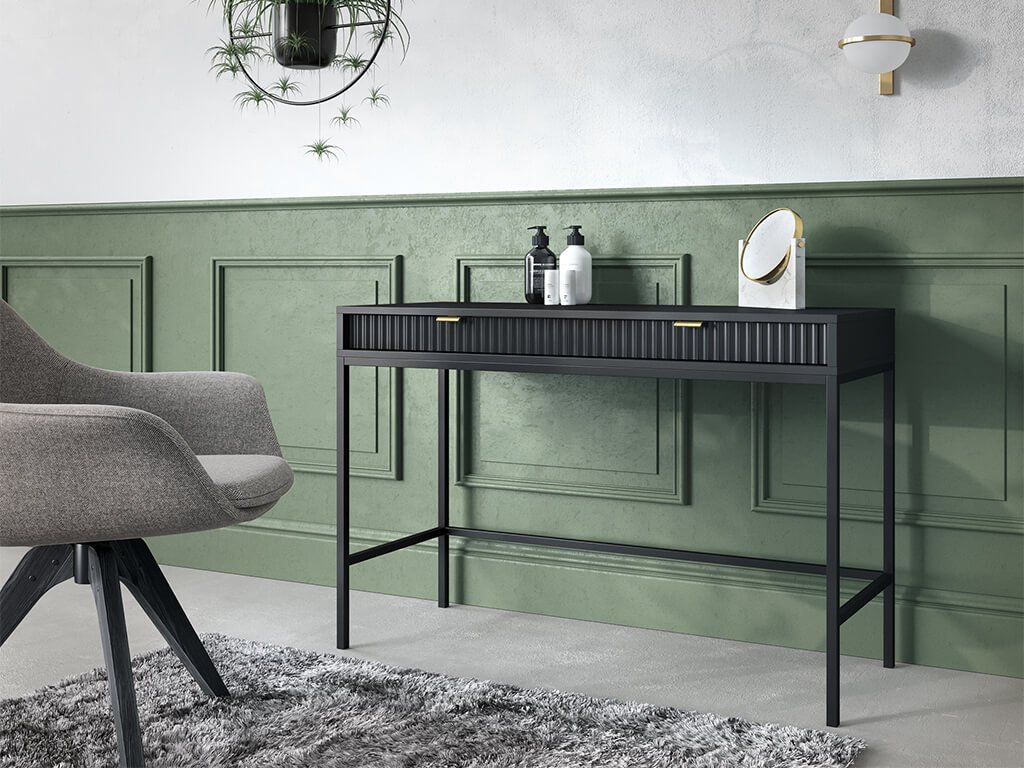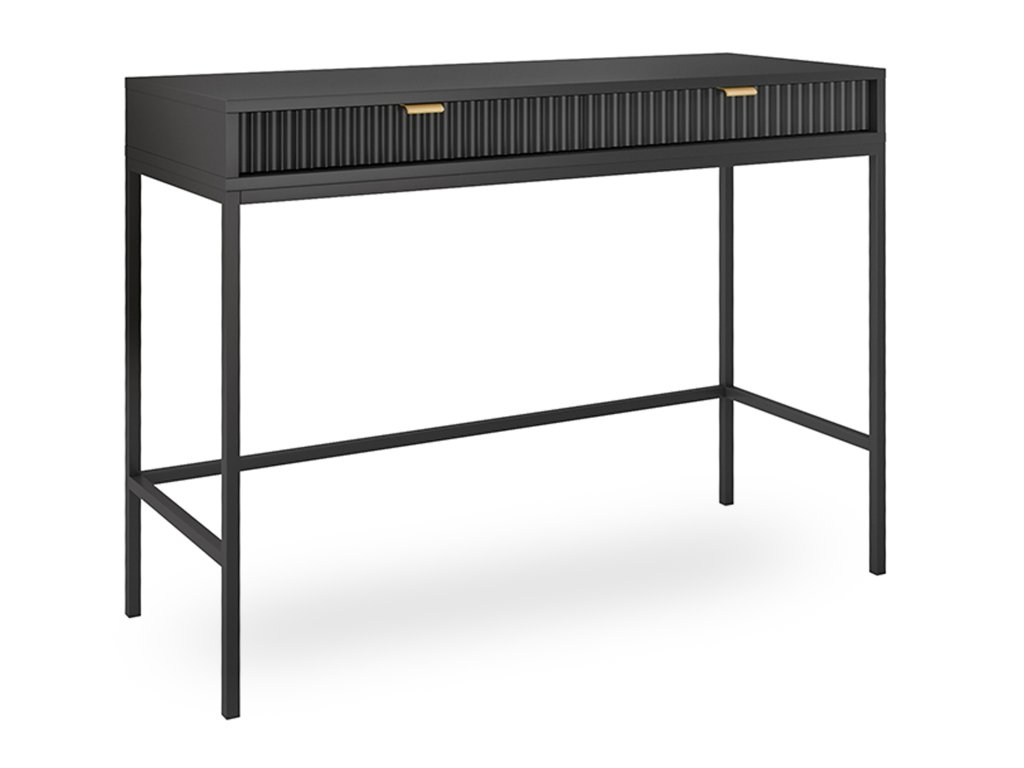 Toaletný stolík Nova T104 Vám pomôže rozumne a elegantne zariadiť Váš interiér. Rád poslúži ženám pri úprave zovňajšku, avšak skvelým pomocníkom môže byť aj v pracovni či obývačke ako konzolový stolík. S jeho praktickým úložným priestorom si zorganizujete všetky svoje vecičky, ktorým hľadáte miesto. Disponuje dvomi zásuvkami.
