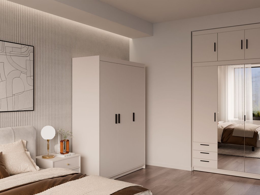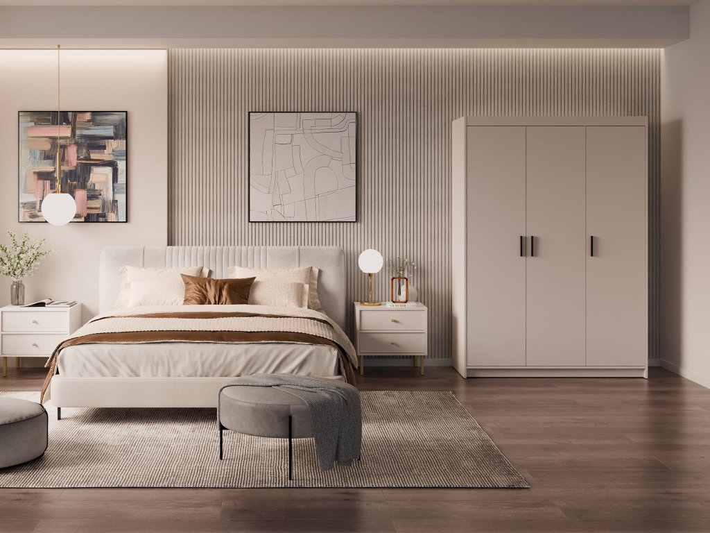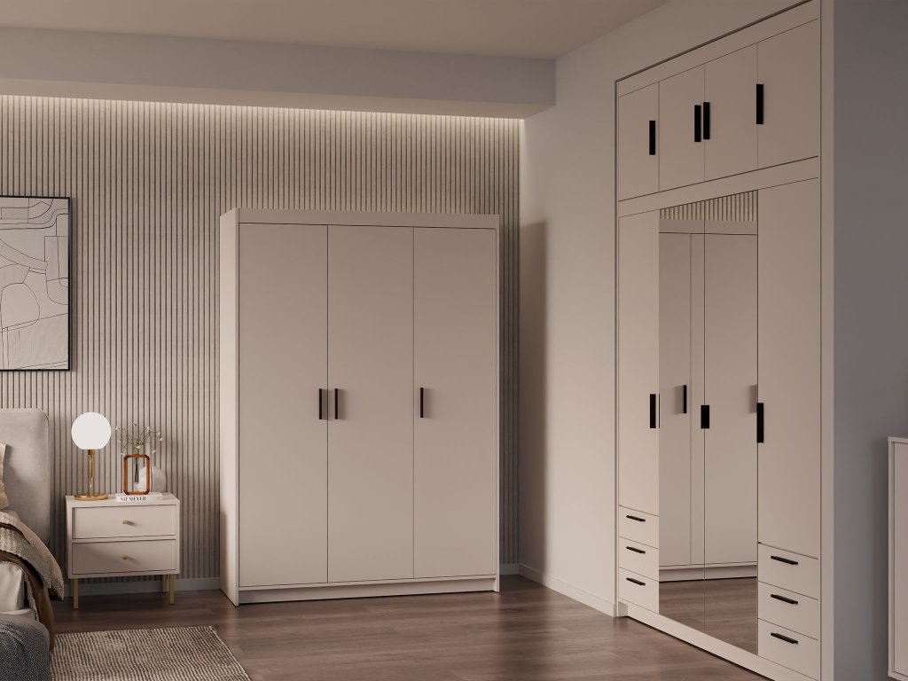 Dizajnová šatníková skriňa Elenas v pieskovej farbe prináša do vášho interiéru moderný a nadčasový vzhľad. Jemný pieskový odtieň pôsobí teplo a elegantne, vďaka čomu sa skriňa hodí do spálne, študentskej izby aj predsiene. Veľký úložný priestor umožňuje prehľadne uložiť oblečenie, kabáty, bundy aj menšie kúsky podľa vašich potrieb.