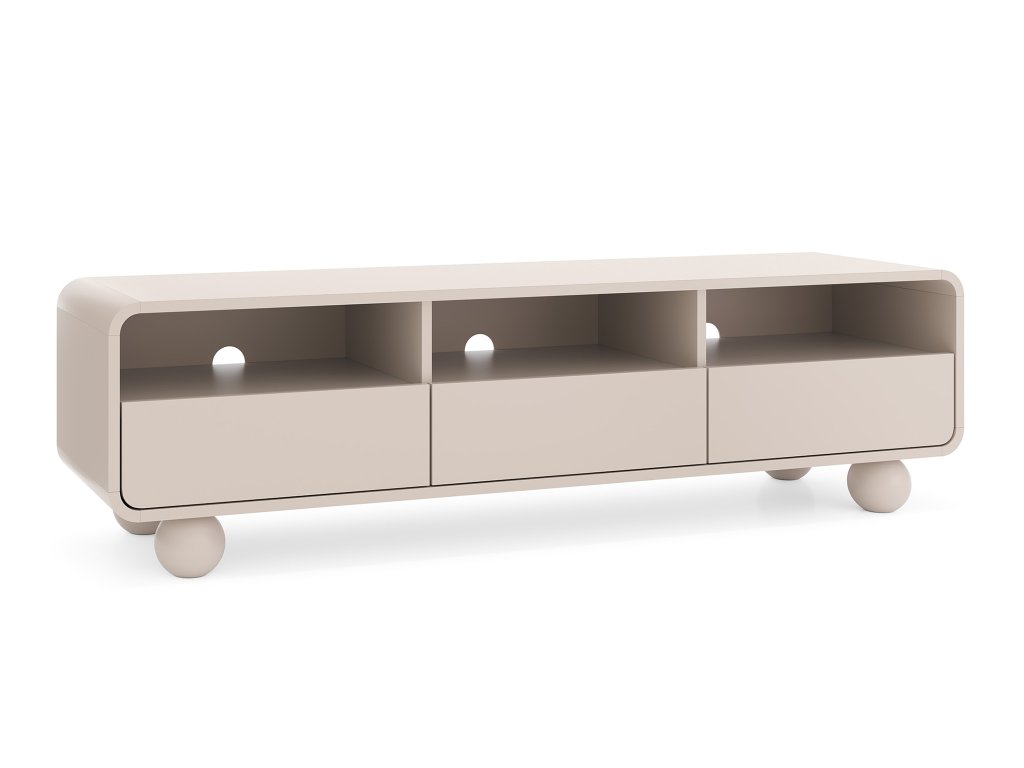 Dodajte svojej obývačke štýl a poriadok s elegantným TV stolíkom Albion 160 v populárnom odtieni kašmíru. Jeho čisté línie a originálne nôžky v tvare gule okamžite pritiahnu pohľad a vytvoria z neho dizajnový prvok priestoru. Kvalitné spracovanie z LTD a MDF dosiek doplnené o ABS hrany zaručuje vysokú odolnosť a dlhú životnosť aj pri každodennom používaní.