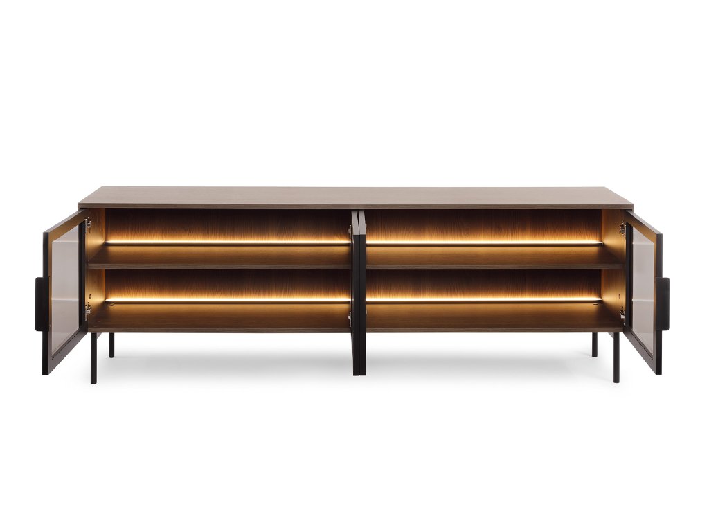 Vyrobený z kvalitných a odolných materiálov s ABS hranami a stabilnými čiernymi nožičkami, TV stolík Limu je nielen štýlový, ale aj praktický. Elegantné čierne kovové úchytky dokonale dopĺňajú jeho moderný vzhľad. Ideálny je pre každého, kto hľadá kombináciu estetického dizajnu a premysleného úložného priestoru pre svoj obývací priestor.