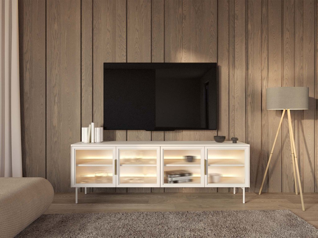 TV stolík je vyrobený z kvalitných a odolných materiálov s precíznymi ABS hranami, čo zaručuje dlhú životnosť a stabilitu. Elegantné zlaté úchytky spolu s pevnými nožičkami dodávajú stolíku sofistikovaný vzhľad a vizuálnu ľahkosť. LIMU TV stolík je ideálny pre tých, ktorí chcú praktický úložný priestor spojený s moderným a štýlovým dizajnom do svojej obývačky.