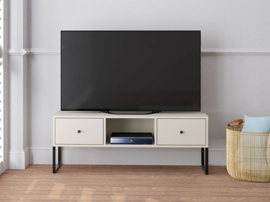 Moderný TV stolík Linea je vyrobený z kvalitnej laminátovej dosky s hrúbkou 16 mm, obohatenej o odolné ABS hrany pre dlhšiu životnosť. Tento moderný stolík ponúka dva úložné priestory po stranách, ideálne na uloženie príslušenstva alebo drobností, a otvorený priestor v strednej časti, ktorý je vhodný na umiestnenie elektroniky, ako je set-top box či herná konzola. Čierne kovové nohy s práškovým nástrekom dodávajú stolíku stabilitu a elegantný vzhľad. Vďaka nežnej kašmírovej farbe stolík Linea dodá vašej obývačke elegantný a vzdušný vzhľad.