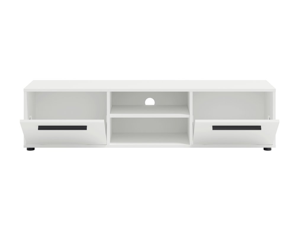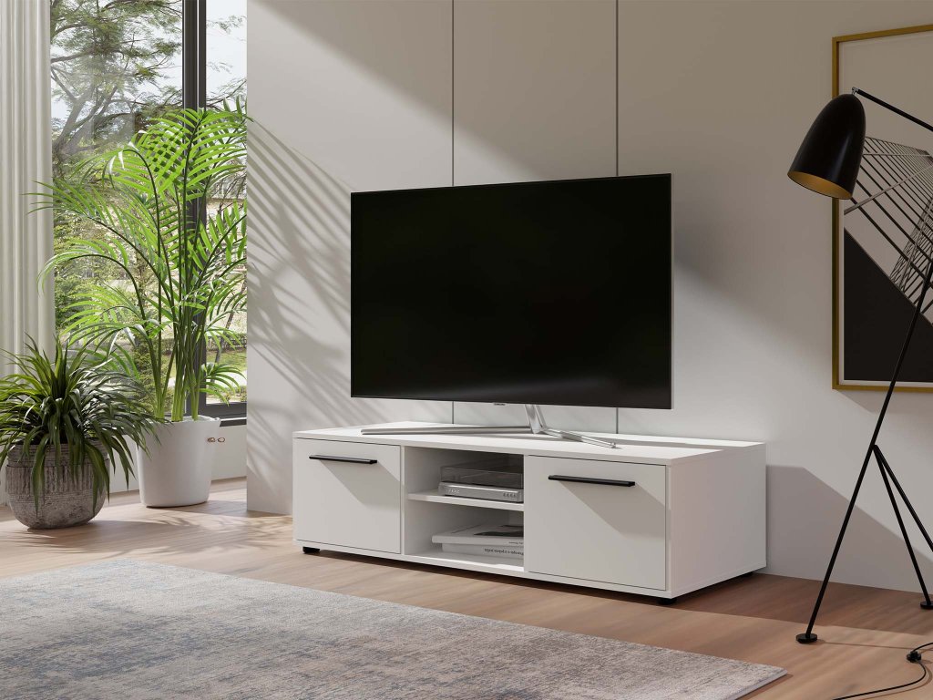 TV stolík Maxione so šírkou 150 cm je viac než len miesto pre televízor – je to dizajnový prvok, ktorý dodá vašej obývačke alebo spálni poriadok a moderný charakter. Biele prevedenie pôsobí nadčasovo, vďaka čomu ľahko zapadne do minimalistického aj klasického interiéru a opticky rozjasní priestor. Stolík ponúka praktickú kombináciu bočných skriniek s výklopnými dvierkami a otvorenej police, ideálnu na uloženie multimediálnych zariadení, herných konzol, ovládačov či dekorácií. Všetko má svoje miesto, takže vaša obývačka zostane uprataná a prehľadná.