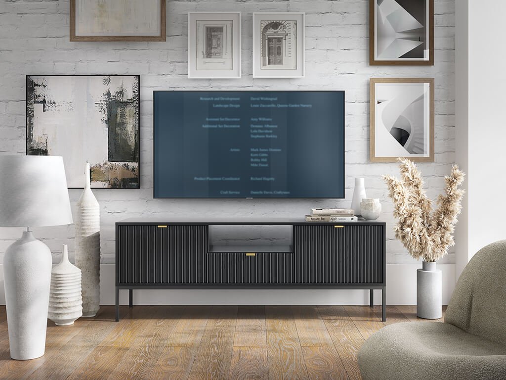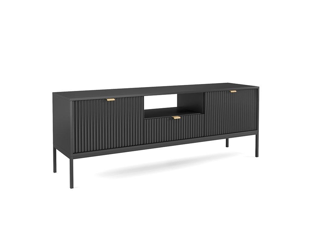 Nesmierne elegantná a štýlová kolekcia NOVA nesmie chýbať v žiadnom interiéri milovníkov moderného dizajnu. Ozdobné drážkované predné časti nábytku sa nádherne dopĺňajú s brúsenými zlatými úchytkami z hliníku. Ľahkosť nábytku dodáva čierna kovová konštrukcia s vysokými nožičkami. S kolekciou Nova si vyskladáte modernú obývačku, avšak niektoré kúsky môžete umiestniť aj do predsiene, jedálne či spálne. Korpus nábytku je tvorený laminovanou DTD doskou, kým drážkované čelá nábytku tvorí kvalitná MDF doska.
