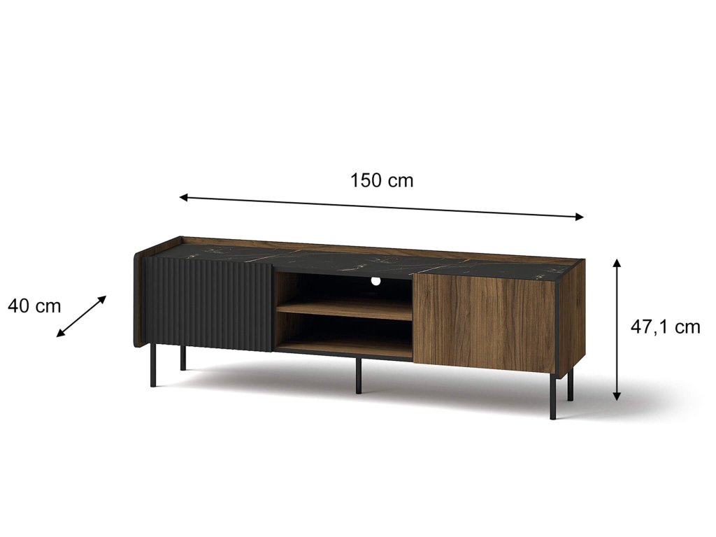 Jednoduchosť a modernosť. To sú slová vystihujúce nádherný TV stolík Prestigo P7, vhodný do každej štýlovej obývačky. Nábytok obsahuje dve postranné skrinky, do ktorých si môžete odložiť veci súvisiace s televízorom. Dve police v strede poskytujú miesto pre vašu elektronickú výbavu, ktorú ľahko zapojíte vďaka diere na kabeláž. Orech Warnia, San Sebastian a matná čierna, kombinácia farieb, vďaka ktorým TV skrinka prekvapí svojim prestížnym vzhľadom. Konštrukcia stojí na pevných, kovových nožičkách o veľkosti 16 cm, dodávajúcich stolíku pevnosť a stabilitu vo vašej obývačke.