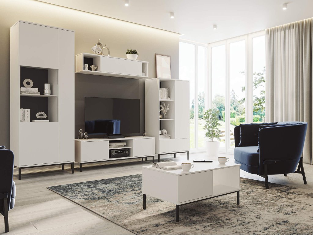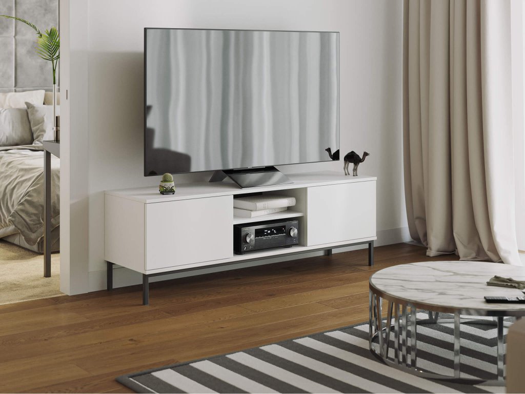 TV stolík Querty je praktický a štýlový kus nábytku, ideálny pre moderné obývacie miestnosti. Jeho dizajn vyniká svojou jednoduchosťou a funkcionalitou. Tento TV stolík je vyrobený z kvalitnej 16 mm drevotriesky, čo zabezpečuje trvanlivosť a odolnosť voči bežným opotrebeniam. Jeho elegantná biela farba dodáva vášmu interiéru čistý a svetlý vzhľad, ktorý sa hodí k rôznym dekoračným štýlom. ABS hrany zabezpečujú pevnosť a chránia stolík pred poškodením. Nábytok disponuje čiernymi kovovými nohami, ktoré mu nielenže dodávajú moderný vzhľad, ale tiež zvyšujú jeho stabilitu. Jednou z výnimočných vlastností tohto stolíka je systém otvárania stlačením - push-to-open. To znamená, že nemá žiadne viditeľné úchyty, čo prispieva k jeho hladkému a minimalistickému dizajnu. Stačí jemný tlak na dvierka stolíka a automaticky sa pootvoria. S jeho šírkou 150 cm je dostatočne veľký na umiestnenie veľkých televízorov a iných zariadení. Stolík má dve otvorené police v strede, ktoré sú ideálne pre audiovizuálnu techniku alebo dekorácie. Okrem toho má aj dve skrinky po stranách, kde môžete uložiť rôzne predmety, aby bol váš priestor dobre usporiadaný. S TV stolíkom Querty si môžete ľahko vytvoriť útulné a dobre organizované prostredie pre svoje filmové zážitky a zároveň pridať štýlový prvok do vášho domova.