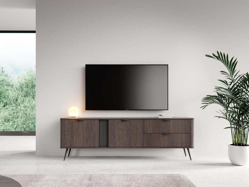 Stolík ponúka premyslené vnútorné usporiadanie, ktoré uľahčí organizáciu elektroniky aj doplnkov. Disponuje dvoma zásuvkami ideálnymi na drobné príslušenstvo, dvojicou dvierok ukrývajúcich úložný priestor a štyrmi policami, kam môžete uložiť prehrávače, konzoly či dekorácie. Tento TV stolík Veris je kombináciou štýlu a funkčnosti, vďaka čomu sa stane neoddeliteľnou súčasťou modernej obývačky. Hodí sa do interiérov, kde je dôležitý poriadok, prehľadnosť a estetická čistota.