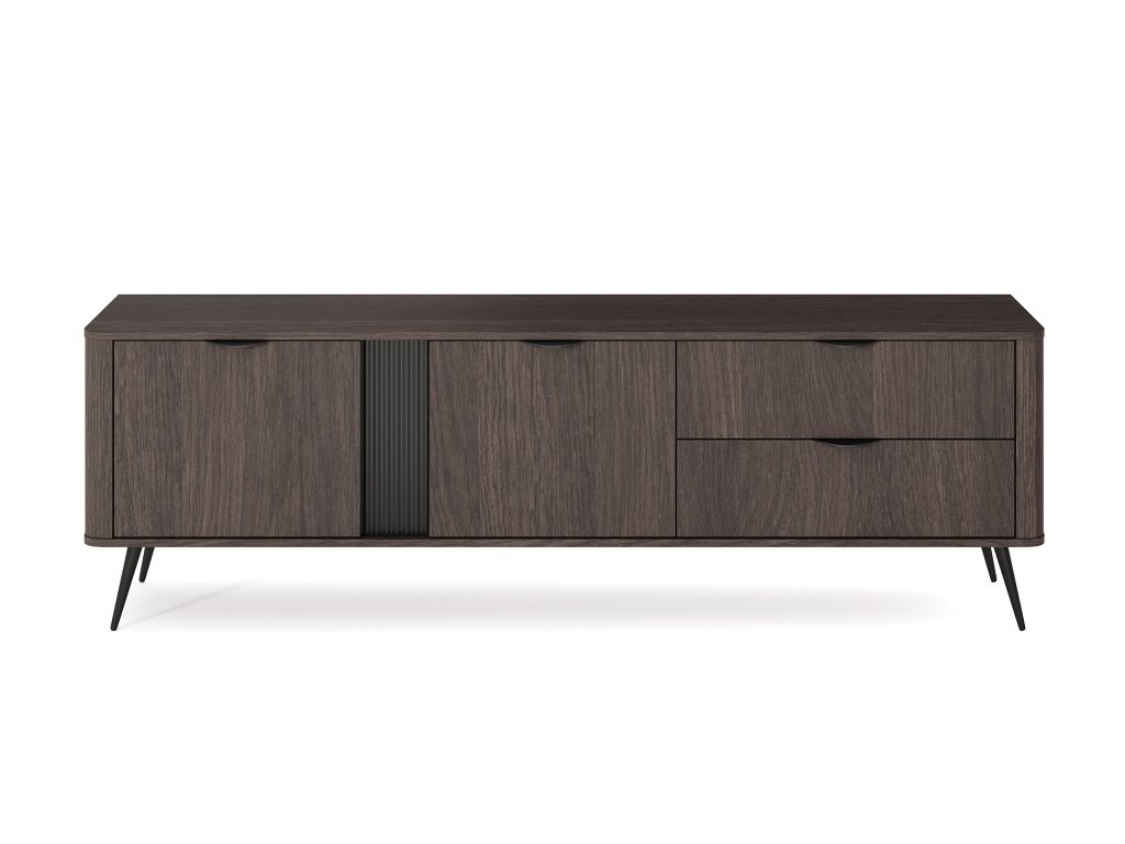 TV stolík Veris s pôsobivou šírkou 195 cm predstavuje elegantný základ pre televízor aj multimediálne zariadenia. Spojenie dekoru dub dunin, precízne spracovaných MDF prvkov s ryhovaním a lamelovým detailom vytvára harmonický vzhľad, ktorý oživí akúkoľvek obývaciu izbu. Stabilné čierne nožičky a kovové úchytky dodávajú stolíku pevnú konštrukciu a moderný charakter.