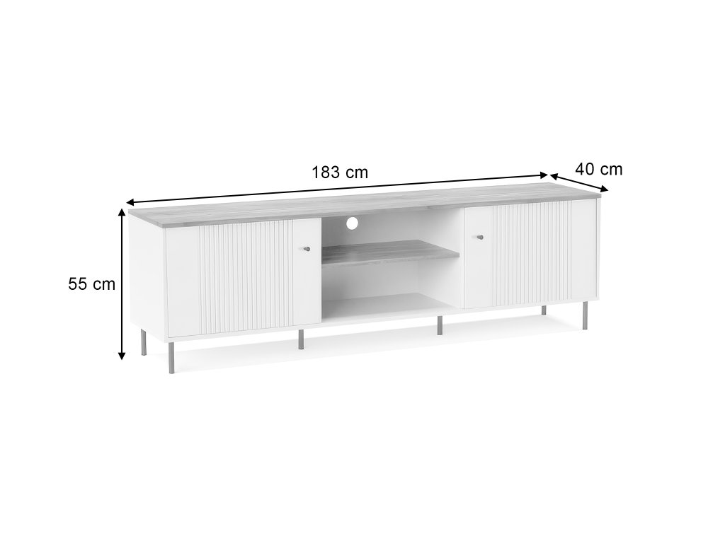 - Materiál: 16 mm lamino doska, MDF doska potiahnutá PVC fóliou, kovové úchytky a nohy