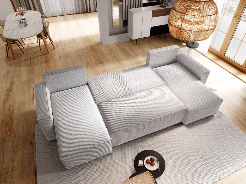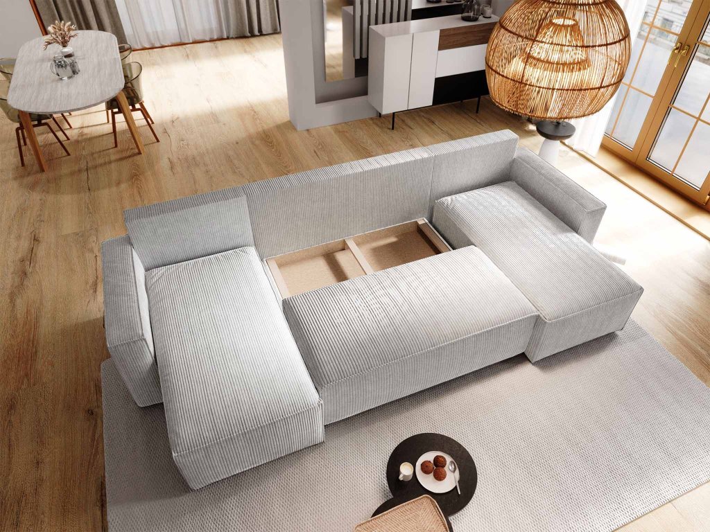 Nechýba ani úložný priestor, ktorý pojme deky, vankúše či sezónne obliečky a pomáha udržať vašu obývačku upratanú.