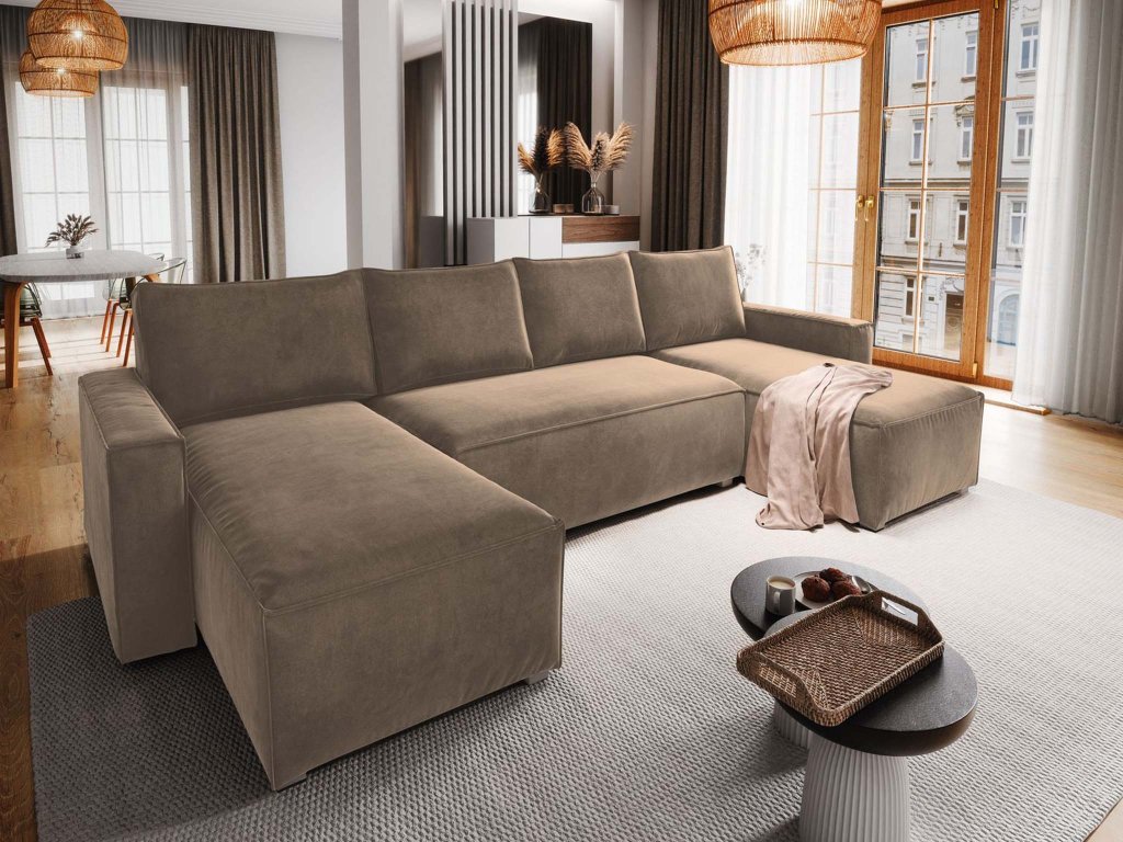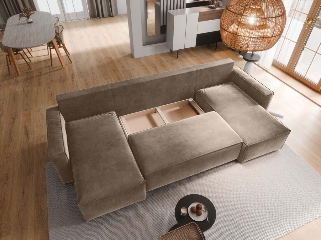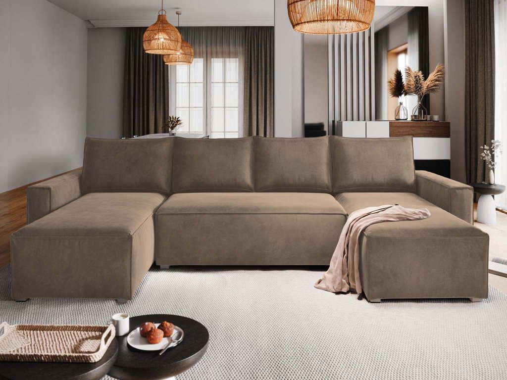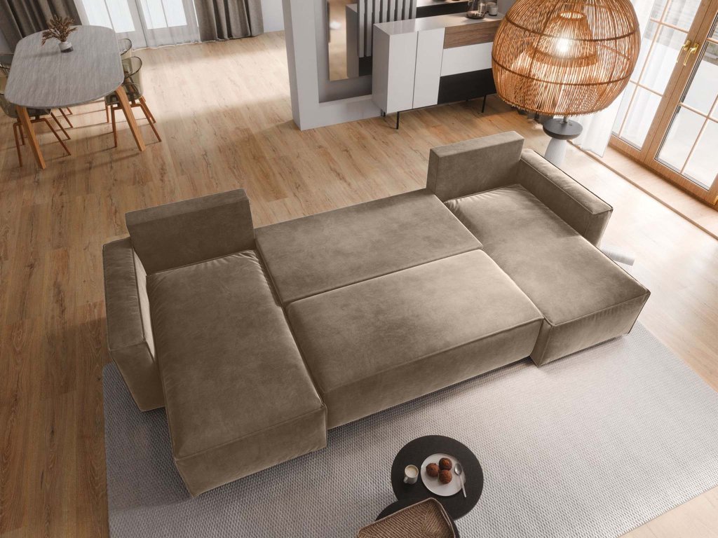 Rozkladacia rohová pohovka Denim v hnedom prevedení vnesie do vašej obývačky útulnosť a noblesu. Zamatová látka Monolith sa vyznačuje jemným leskom, ktorý mení odtieň pri dotyku rukou, a vytvára tak zaujímavý vizuálny efekt. Vďaka hydrofóbnej úprave je odolná voči rozliatym tekutinám a zároveň veľmi príjemná na dotyk. Robustná konštrukcia spojená s kvalitnou výplňou poskytuje dokonalé pohodlie pre každodenný relax.